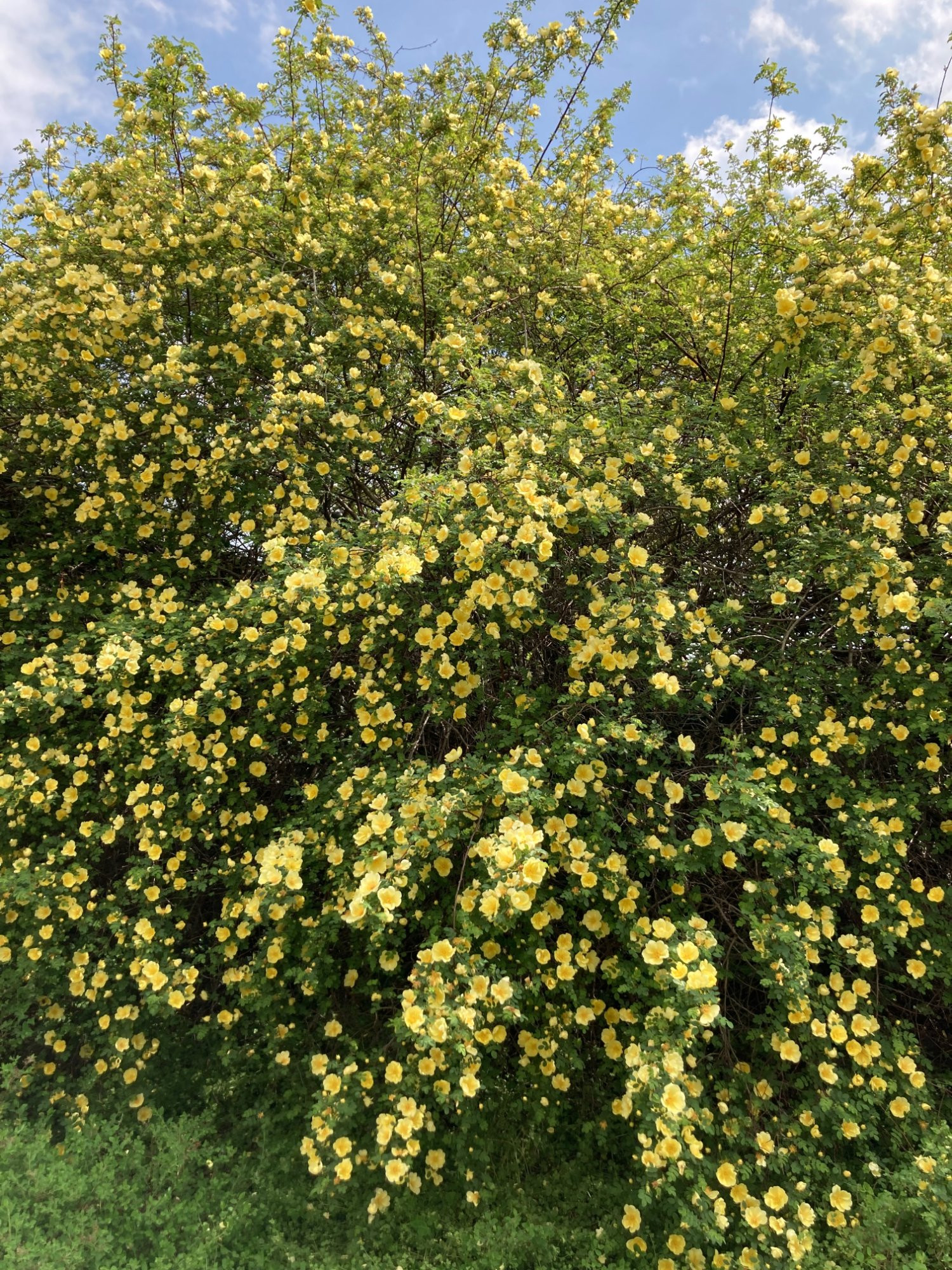 hobab, ja, die R hugonis ist toll. Vor allem kommt sie auch ganz gut zwischen anderen Sträuchern klar. Wüsste nicht, dass die invasives Potenzial hätte, halte ich mal für vernachlässigbar.