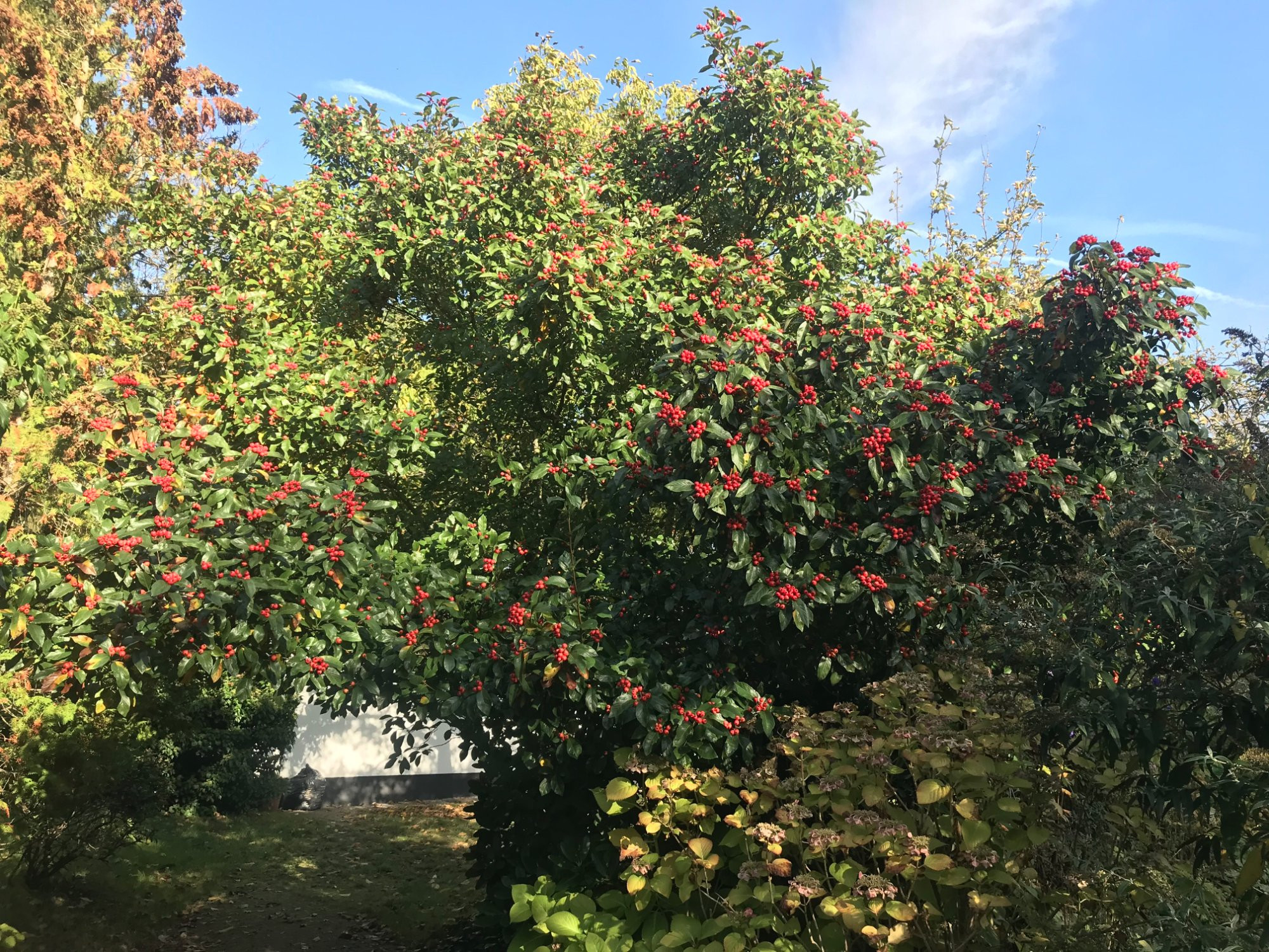 Mit den roten, sehr poppigen Beeren sieht das toll aus.