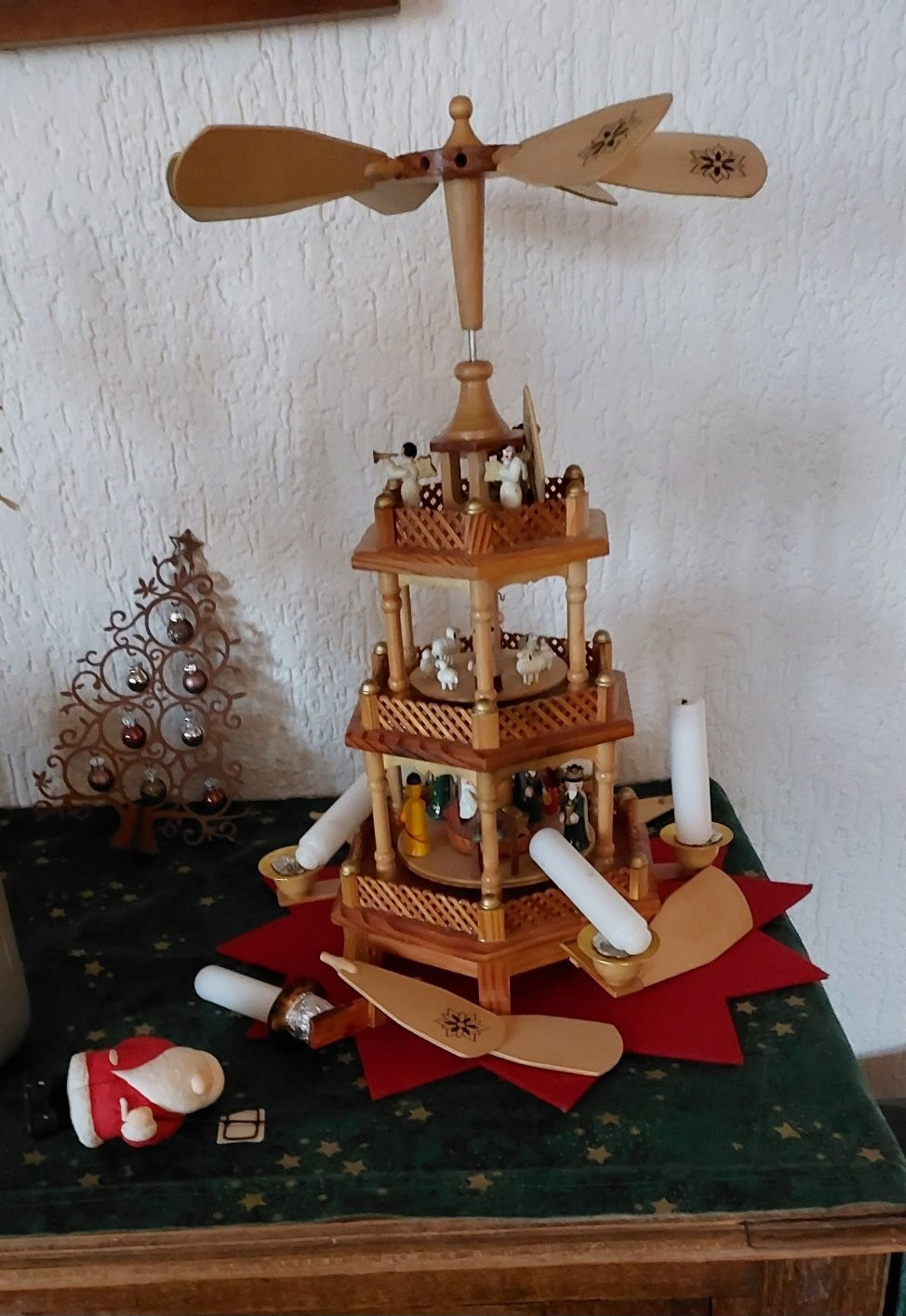 Inzwischen habe ich allerdings ein weihnachtsbaumähnliches Dings. Katzen würden das auch zerfleddern, Hund nicht.