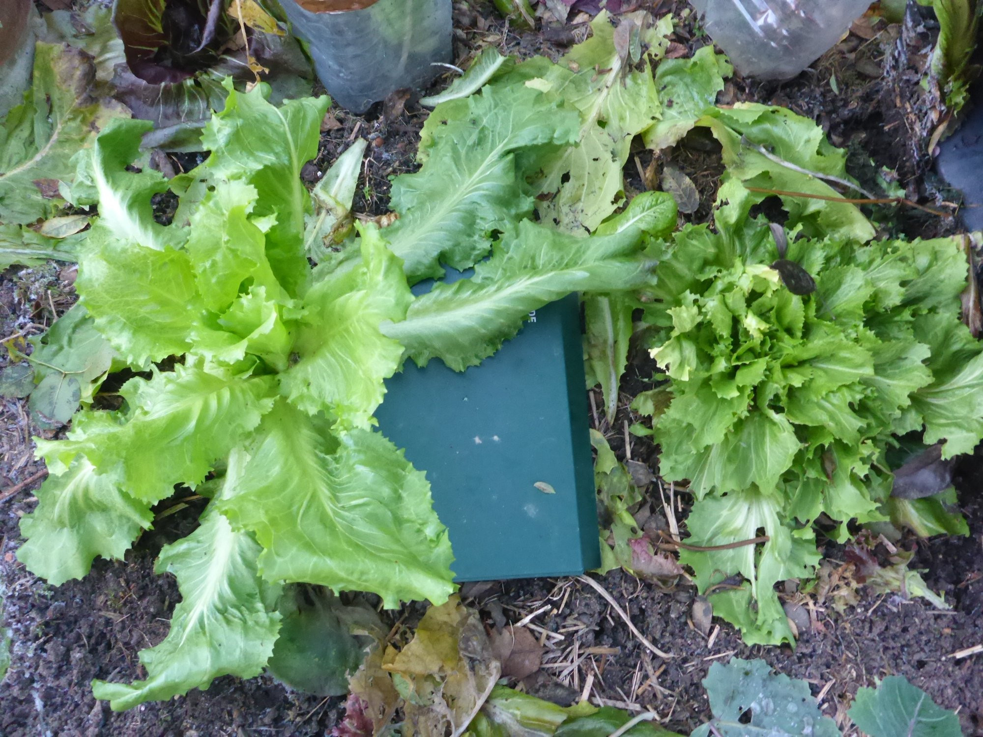 Aber trotzdem zu früh gefreut: Die Abdeckungen haben Familie Wühlmaus gleich mal animiert, dort mit bed & breakfast-Service Quartier zu nehmen: 2 x hats die Wurzeln betroffen und 1 x den Kopf selber (die Hinterlassenschaften lassen keinerlei Zweifel an der Täterschaft zu). Bevor die da weitermachen (vermute mal, dass mein Besuch kam, als die Täter gerade frisch am Werk waren), habe ich die übrig gebliebenen Reste nolens volens geerntet (sollte ja eigentlich noch die eine oder andere Salat-Mahlzeit im Dezember abwerfen) und "muss" nun die nächsten Tage etwas Salat-zentrierter speisen... *gg*