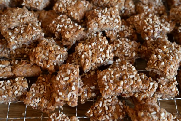 Meine Basler Leckerli mit ziemlich großen unfreiwilligen Anteilen von gesundem Mehl haben schon wieder Suchtpotential, zum Glück nicht für Hundi. Eine Schönheitspreis gewinnen sie nicht, das macht aber nix.