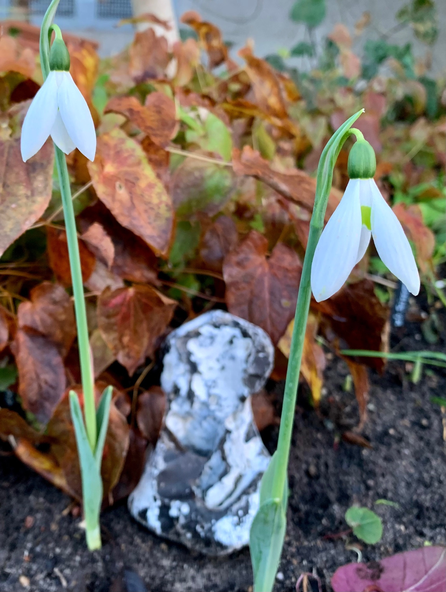 Bei Aufräumarbeiten im Beet gesehen, dass die ersten Blüten bereits nach unten klappen. Je nach Temperaturen am Wochenende gibt es dann Adventsschiffchen.