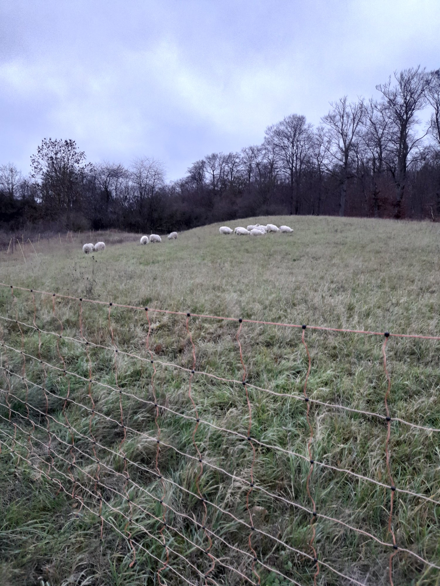 Morgen früh werde ich für die Bocklämmer neu zäunen. Die waren heute auf Heuversorgung. Da sie auf keinem landwirtschaftlichen Grundstück stehen, ist das egal.
