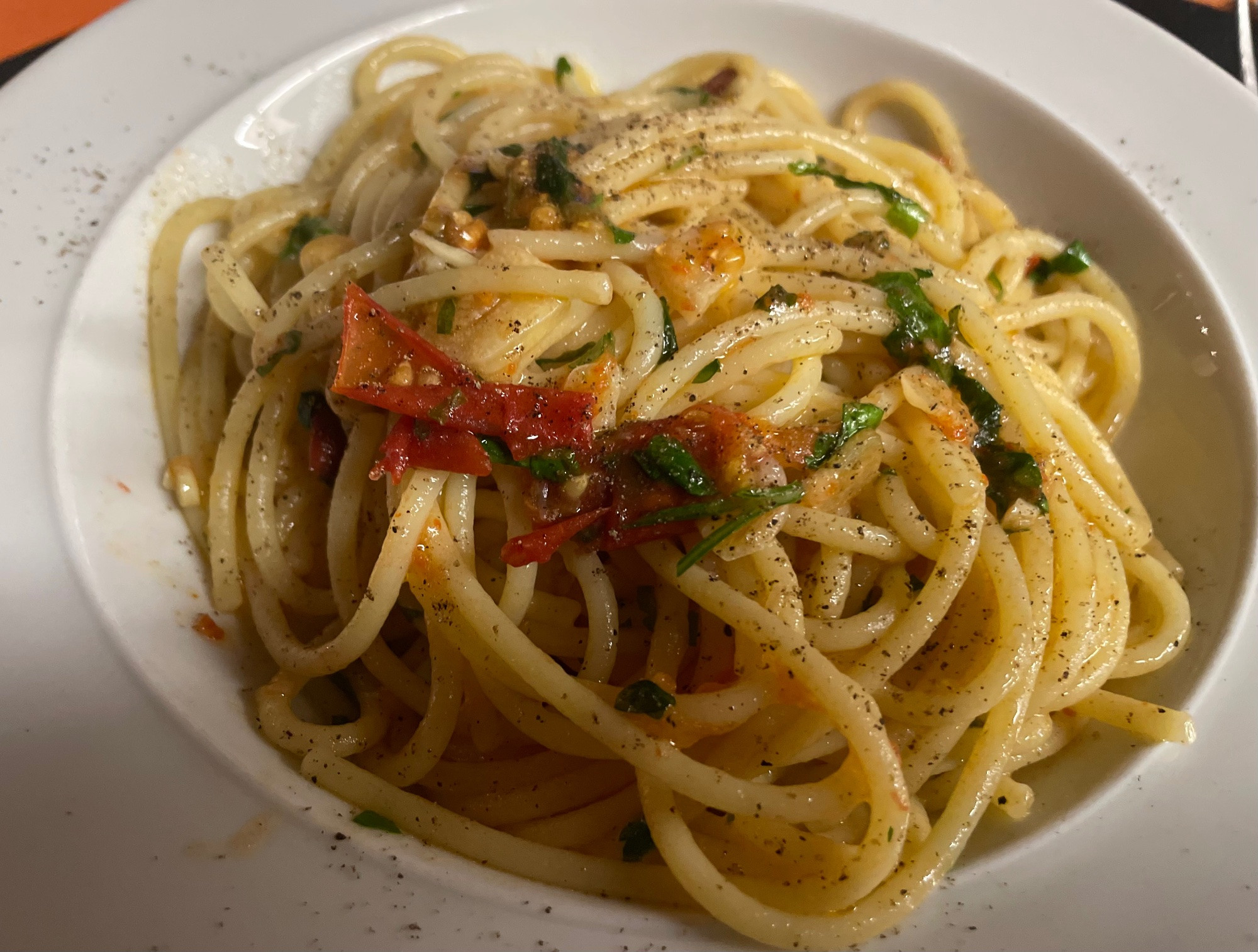Derweil gab es heute bei uns Spaghetti aglio e olio.