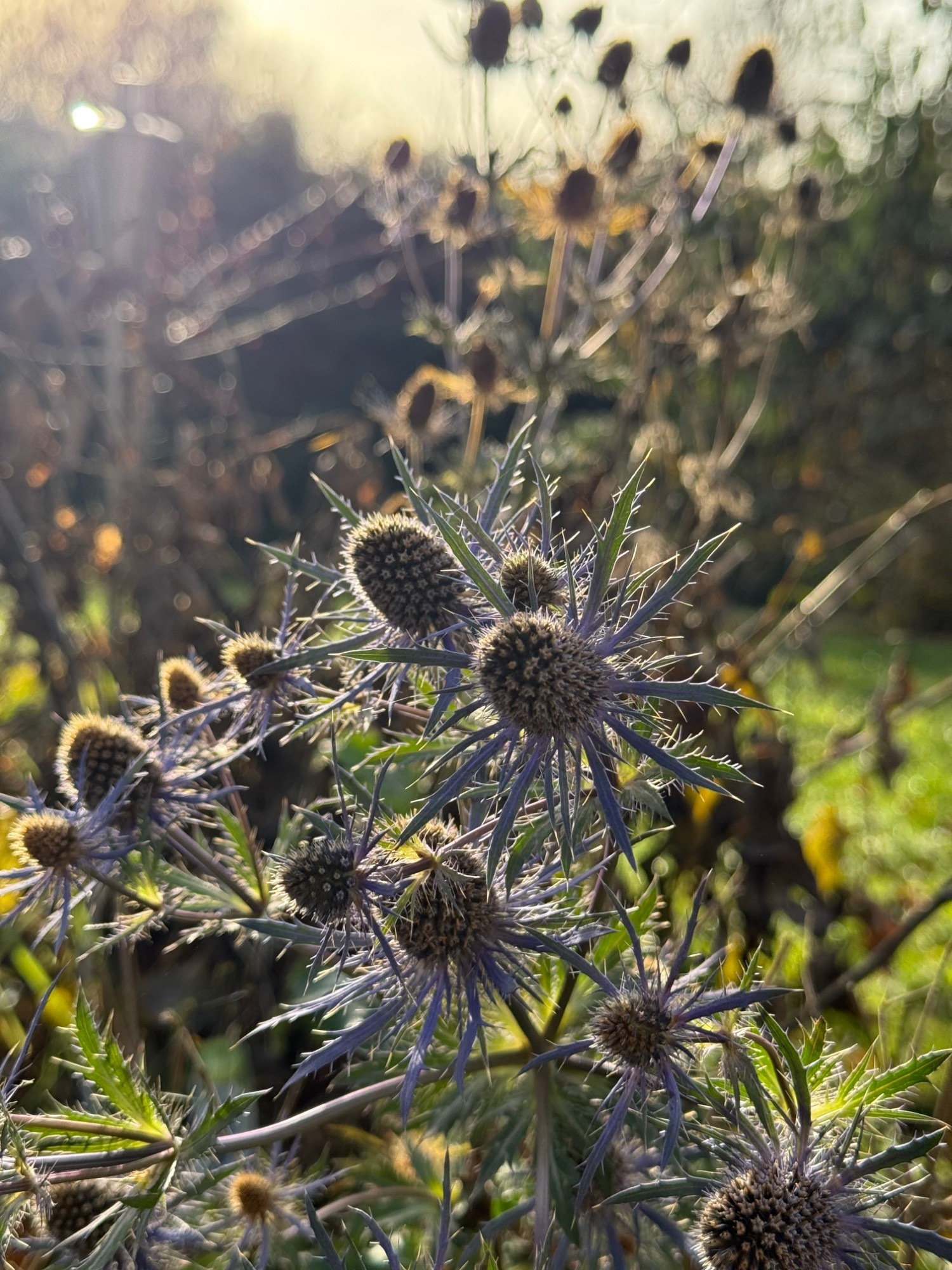 Ich mag Eryngium, schön dass sie noch durchhalten. Bei mir wollen die irgendwie nicht. Im September habe ich Samen von der grossen Miss Willmots Ghost gesammelt. Mal sehen ob davon was wird.