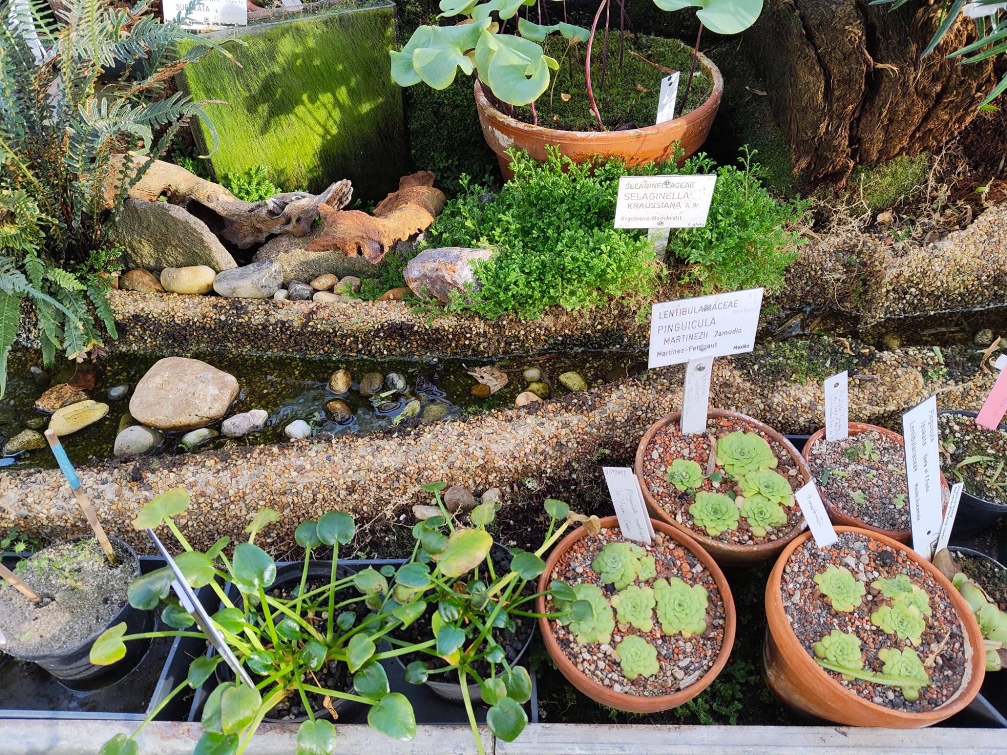 Tatsächlich sind Botanische Gärten, nicht in erster Linie zur Belustigung von Besuchern da, sondern sind wissenschaftliche Einrichtungen. Meist haben im BoGa mehrere Fraktion das sagen, was nicht immer zu guten Ergebnissen führt: die Verwaltung guckt vor allem aufs Geld und eher wenig auf die Pflanzen, die Wissenschaftler verlustieren das bisschen an Finanzen die es gibt auf teuren Reisen und interessieren sich vor allem für Ihre Publikationen und dann sind da schließlich die Gärtner, die das Ganze ausbaden müssen und mit den äußerst knappen Ressourcen häufig nicht mehr hinkriegen als Töpfe ausstellen mit Etiketten. Ab und zu gibt es dann Fördermittel aus irgendwelchen nicht regelmäßigen Töpfen, dann kann man vielleicht mal ein Erlebnishaus bauen, ansonsten reicht das Geld, zumindestens in Berlin, nicht mal für die Pflege aus. Ich fände es völlig in Ordnung, Töpfe mit Etiketten aufzustellen und sonst nichts, genau das macht einen botanischen Garten aus. Im Außenbereich ist es natürlich leichter und kostengünstiger, das Ganze ein bisschen gefälliger darzustellen..