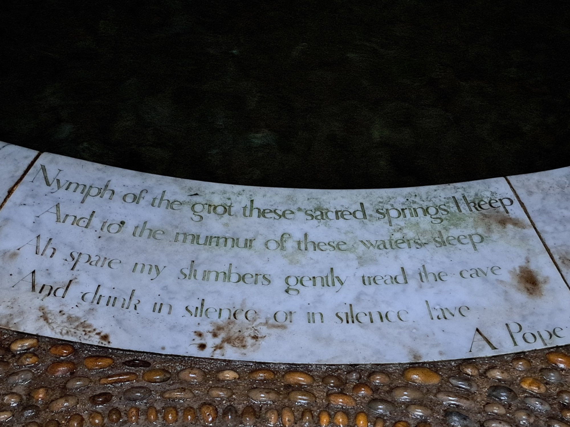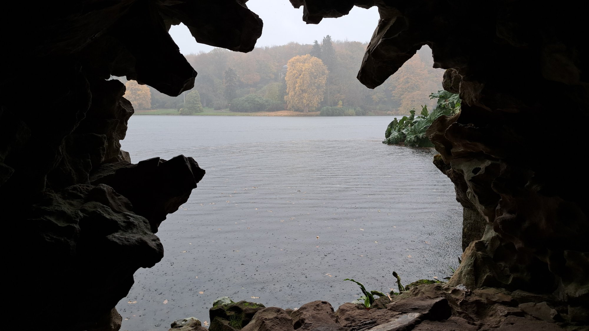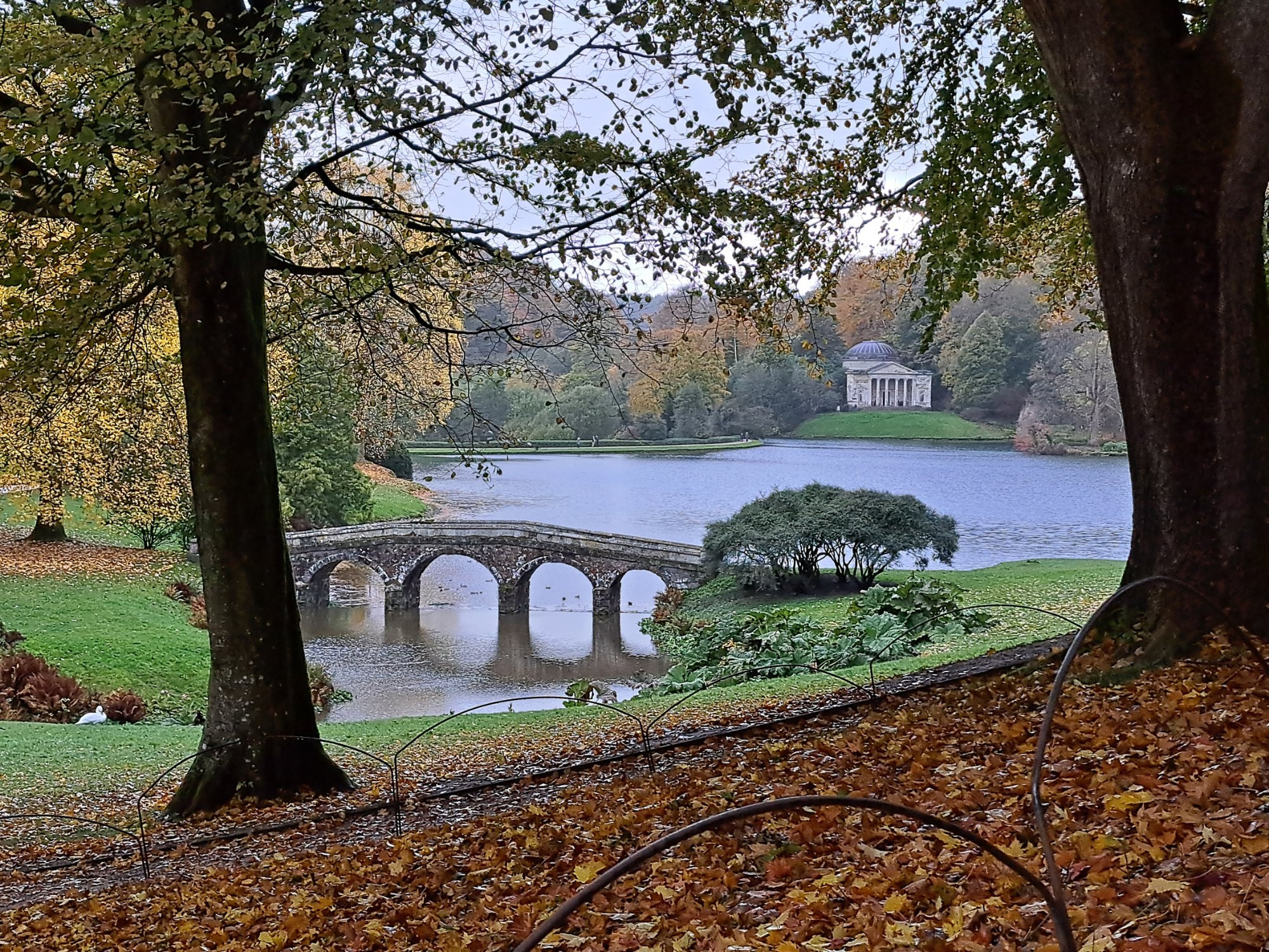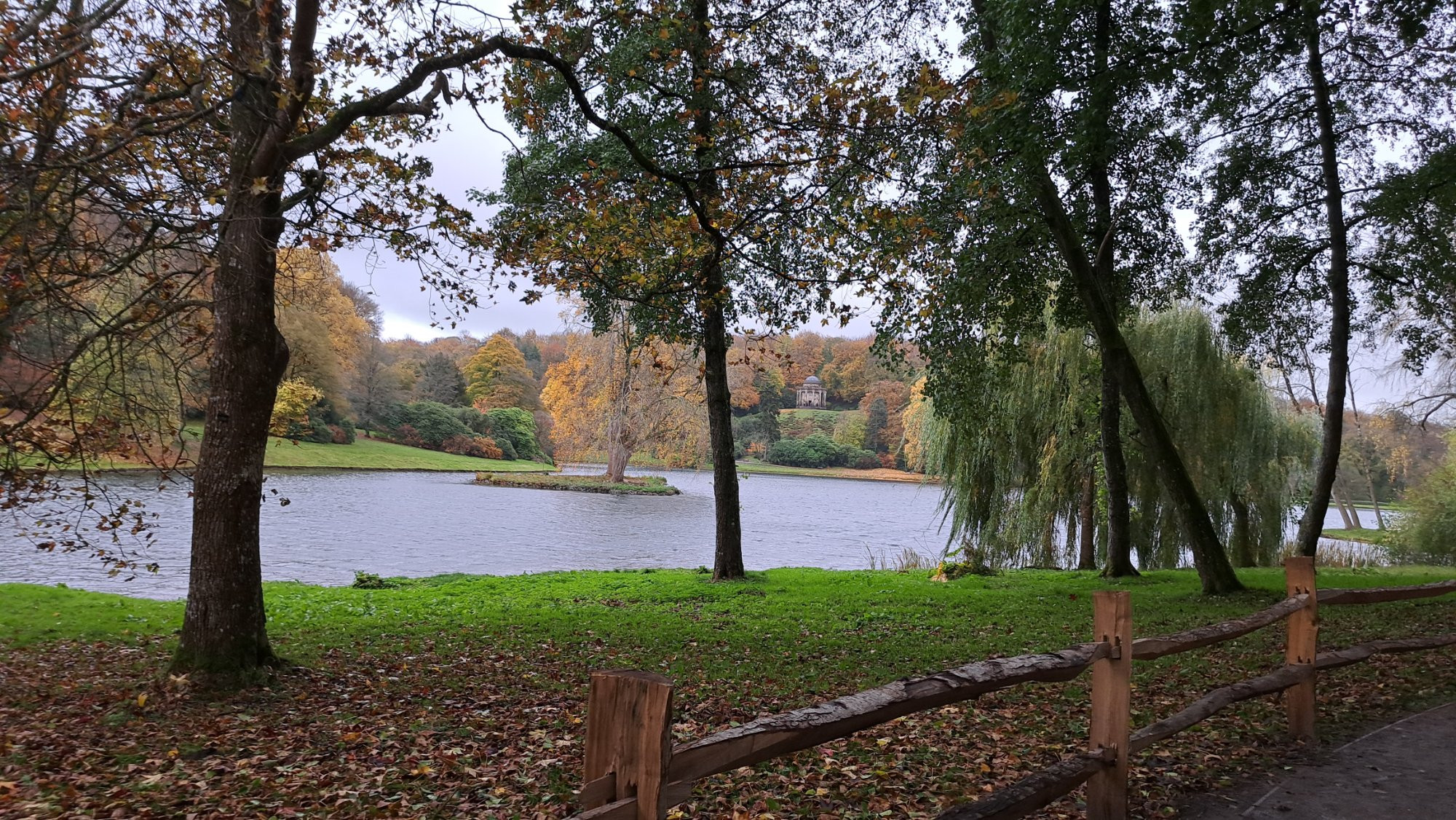 Rückblick zum Temple of Flora. Dort links hinter dem Hügel steht das Herrenhaus.