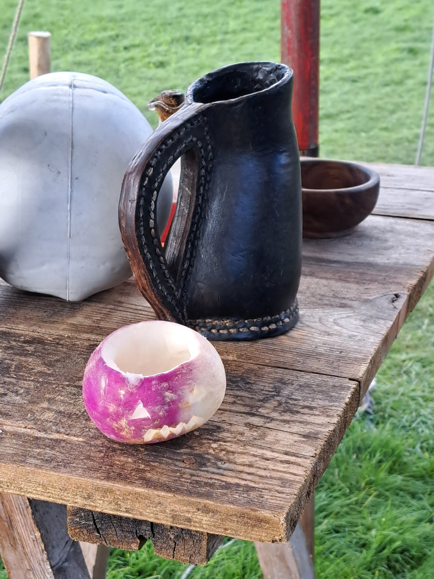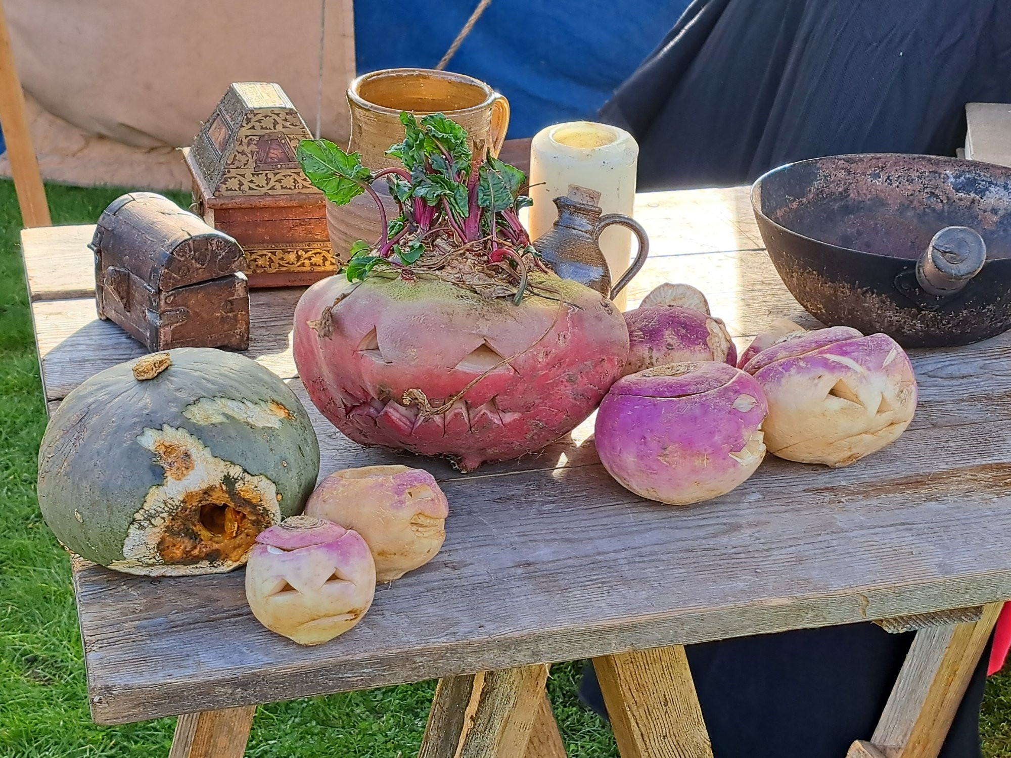 Ich schnitzte meine Rübe selbst (hatte mein Taschenmesser dabei, da sie keine Messer rausgeben darf) und erfuhr von ihr, dass der Ritter ja selbst Schuld sei. Schließlich hate er ihr nach dem Leben getrachtet, während sie gar nix getan hat. Aber da sie gegen irgendwelche Hexenregeln in ihrer Ausbildung verstoßen hat, muss sie zur Strafe die ganze Woche dort stehen und arbeiten, während der Ritter sogar zwei Teepausen am Tag hat. Und er solle sich doch bitte nicht so anstellen und dauernd beschweren...