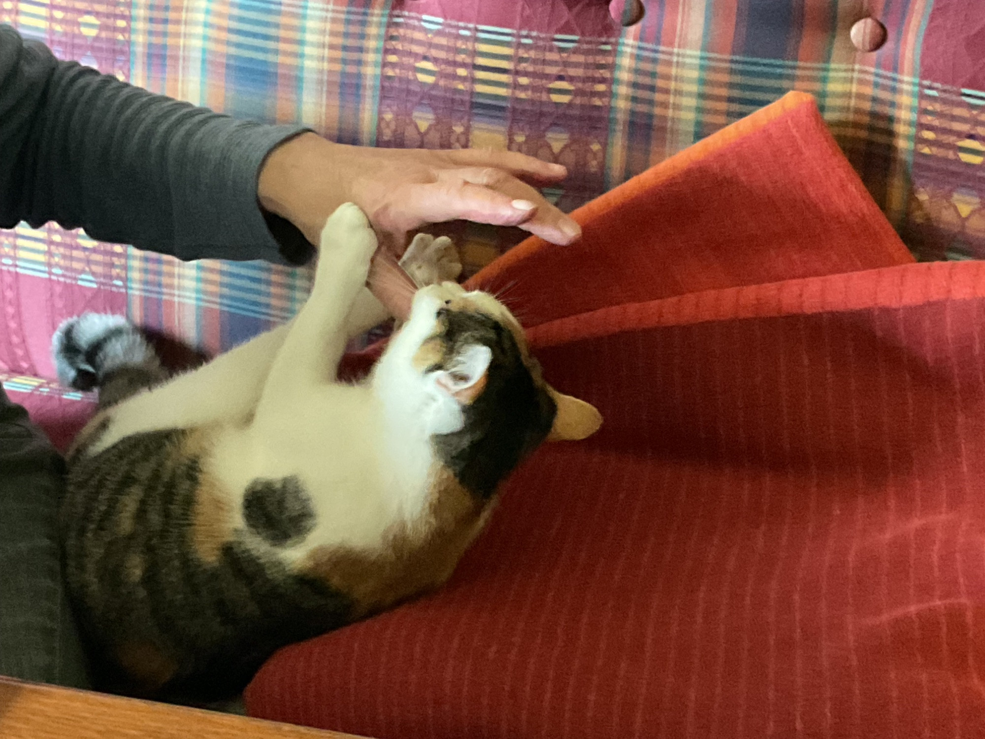 Da Juni kein Geschwisterchen zur Verfügung hat muss Frauchen zum kampeln herhalten.