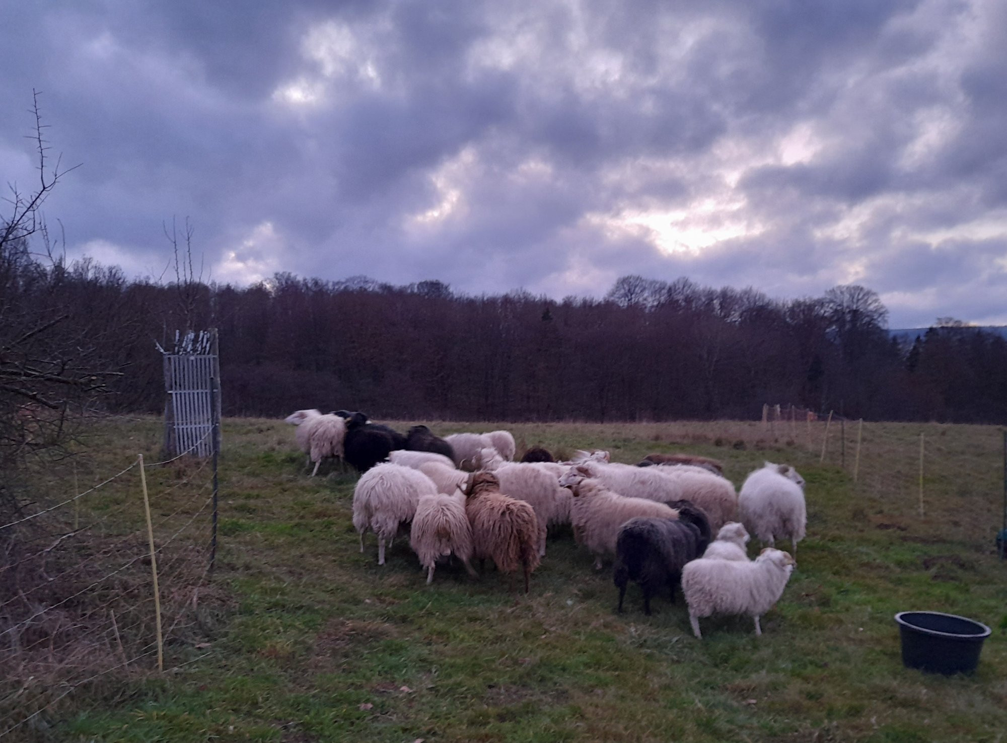 Morgens... Chaos, weil die Böcke irgendwann draußen waren. Zaun hing komisch auf halb acht. Lauter Schafköddel draußen. Erstmal durchzählen. Gar nicht einfach, wenn die Bockgruppe auf zwei Standorte aufgeteilt ist.
