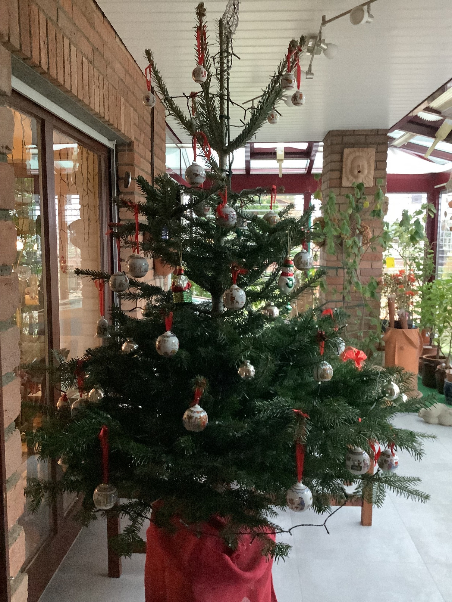 Unser Weihnachtsbaum ist eine Fichte und inzwischen etwas zu groß mit vielleicht 6m, steht vorm Wohnzimmerfenster und wird nicht mehr geschmückt, weil wie gesagt zu groß.