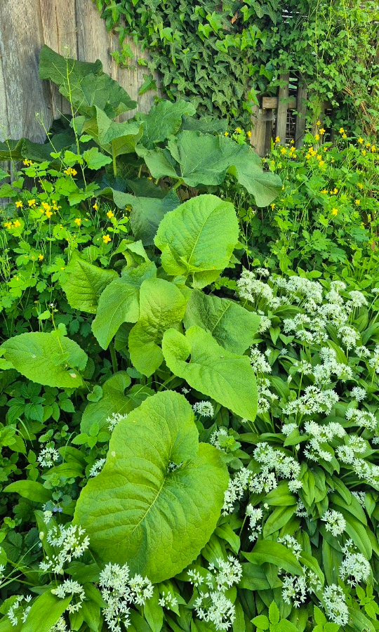 Ich sehe Knoblauchsrauke... die hab ich auch (schon verblüht hinten)... und Schöllkraut, Klette, Cicerbita, Bärlauch etc.