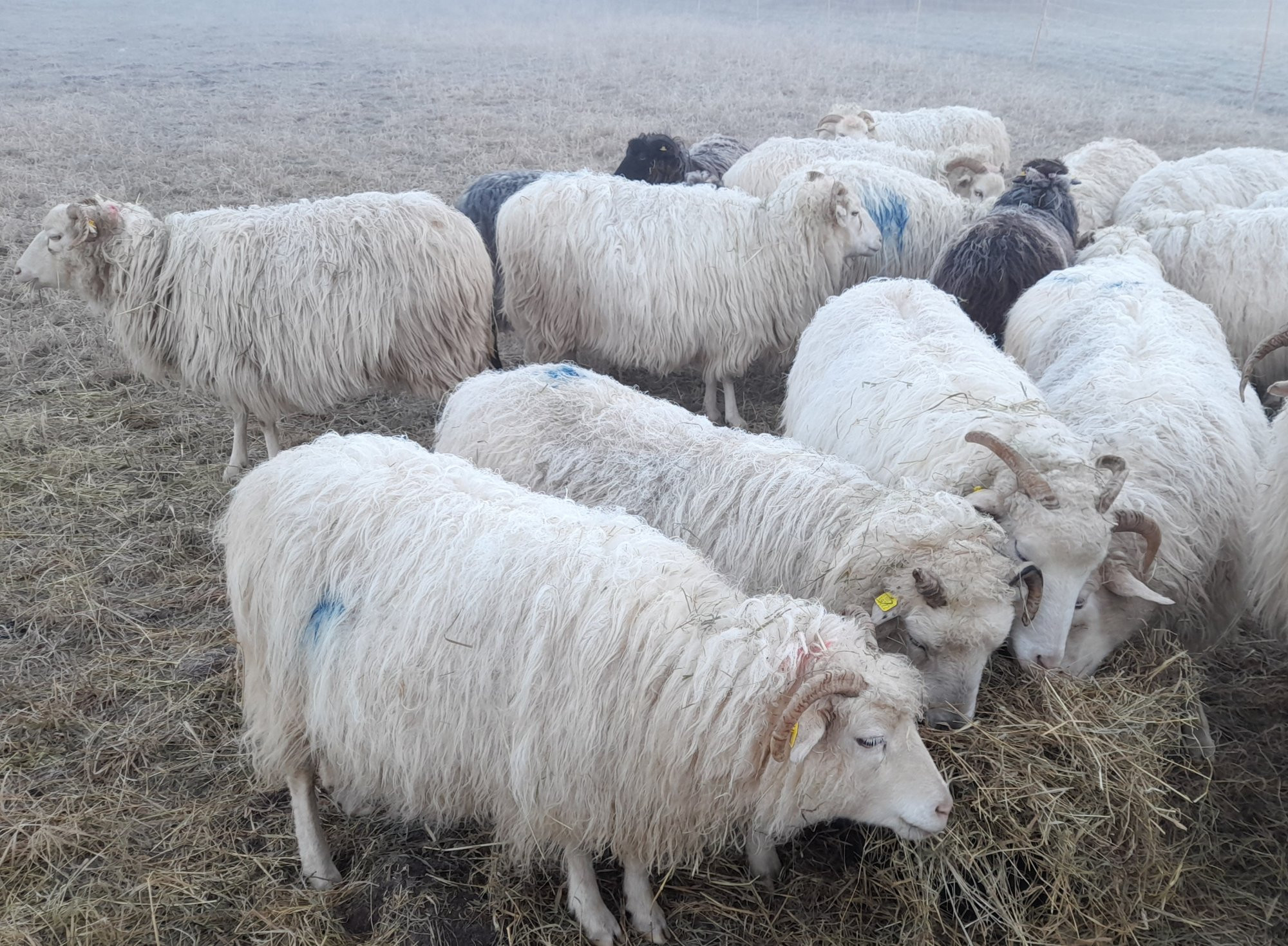 Bei den eisigen Temperaturen auf Heu gestrandet. Ich kann die große Herde nicht weiter zäunen