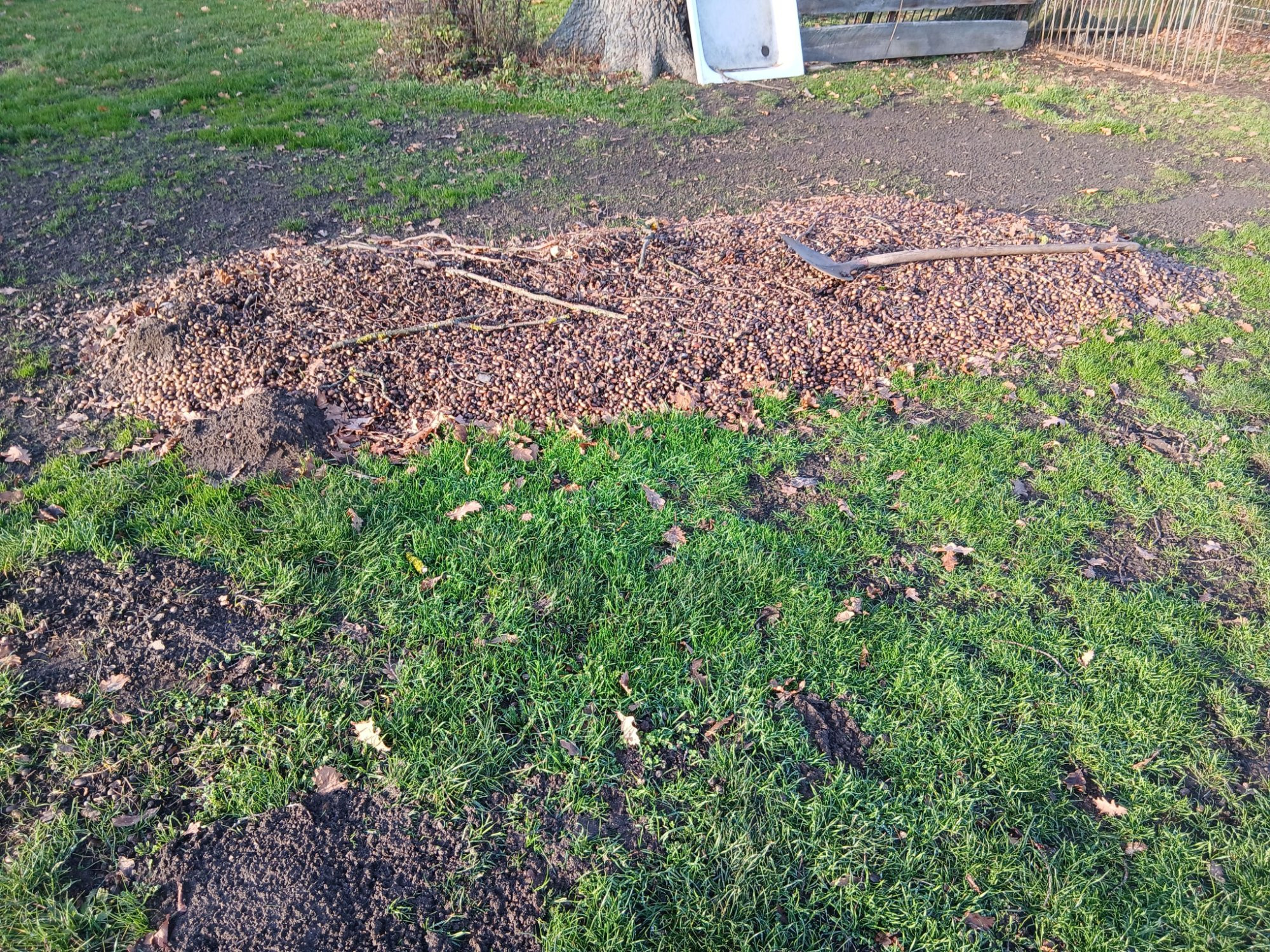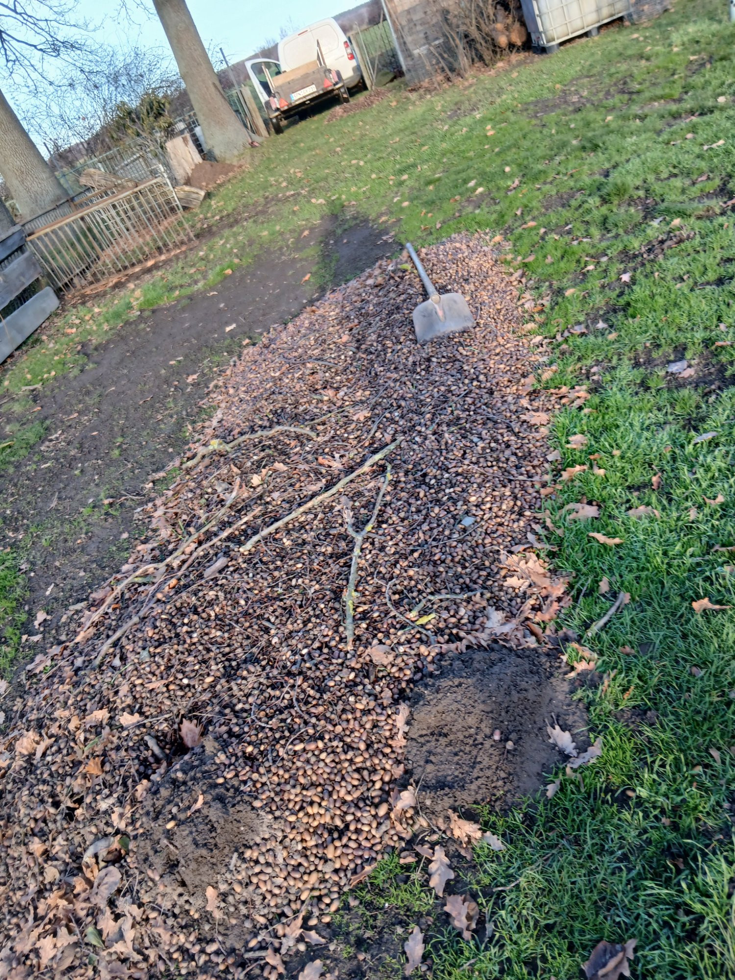 Hab jetzt die letzten der im Herbst zusammengepusteten Eicheln in den Kiefernwald geschafft