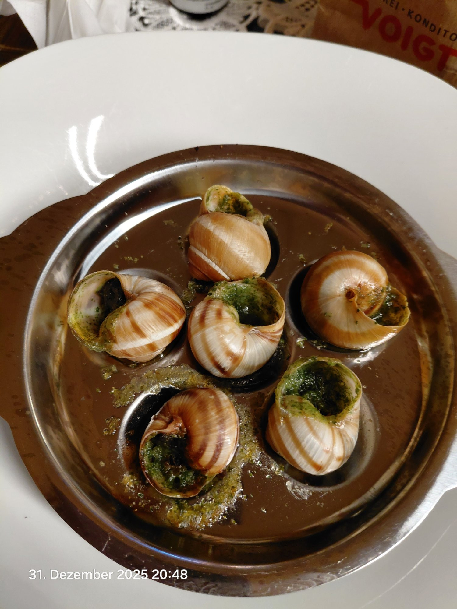 Ich hatte bis jetzt einen Mini Berliner und Spargel Suppe. Nachher sind noch Schnecken mit Toast in der plane....