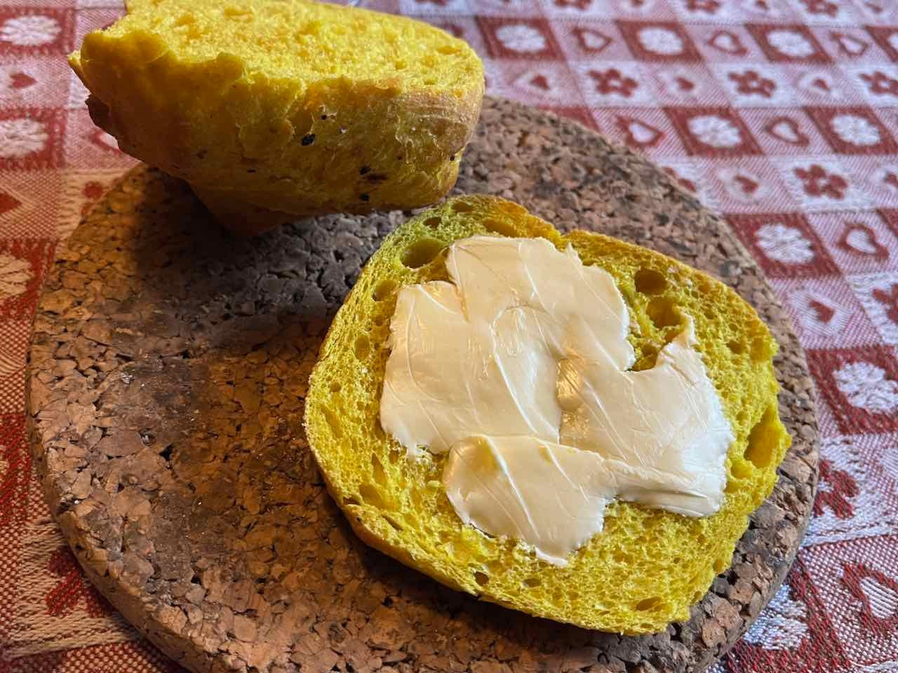 Brunch mit geräucherter Lachsforelle, Kurkumasemmel mit Butter zum Champagner "Chatelin" und zum Neujahrskonzert der Wiener Philharmoniker aus dem Goldenen Musikvereinssaal