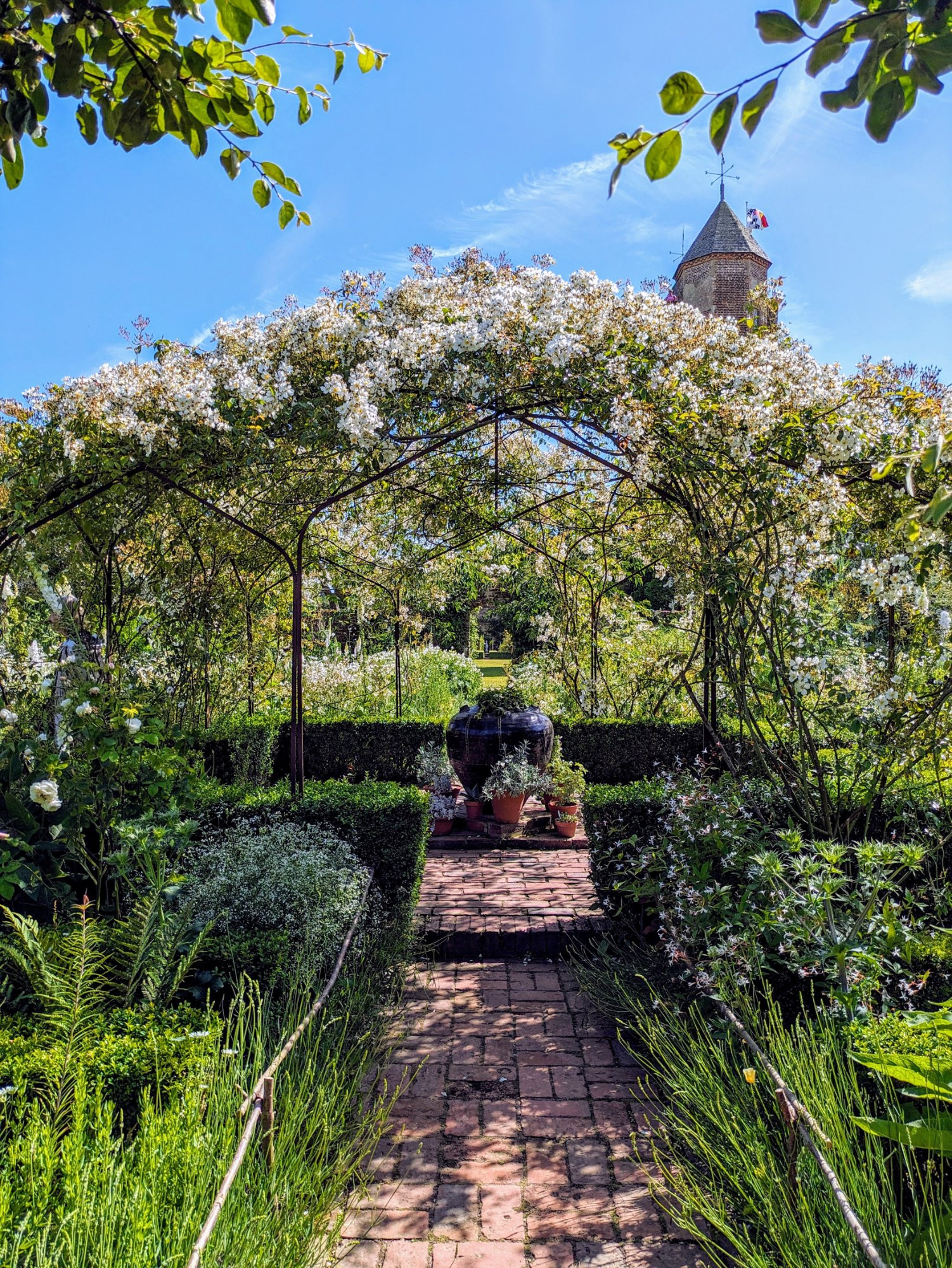 Dann lege ich an die Rosen an und zeige ein Foto aus Sissinghurst Garden: