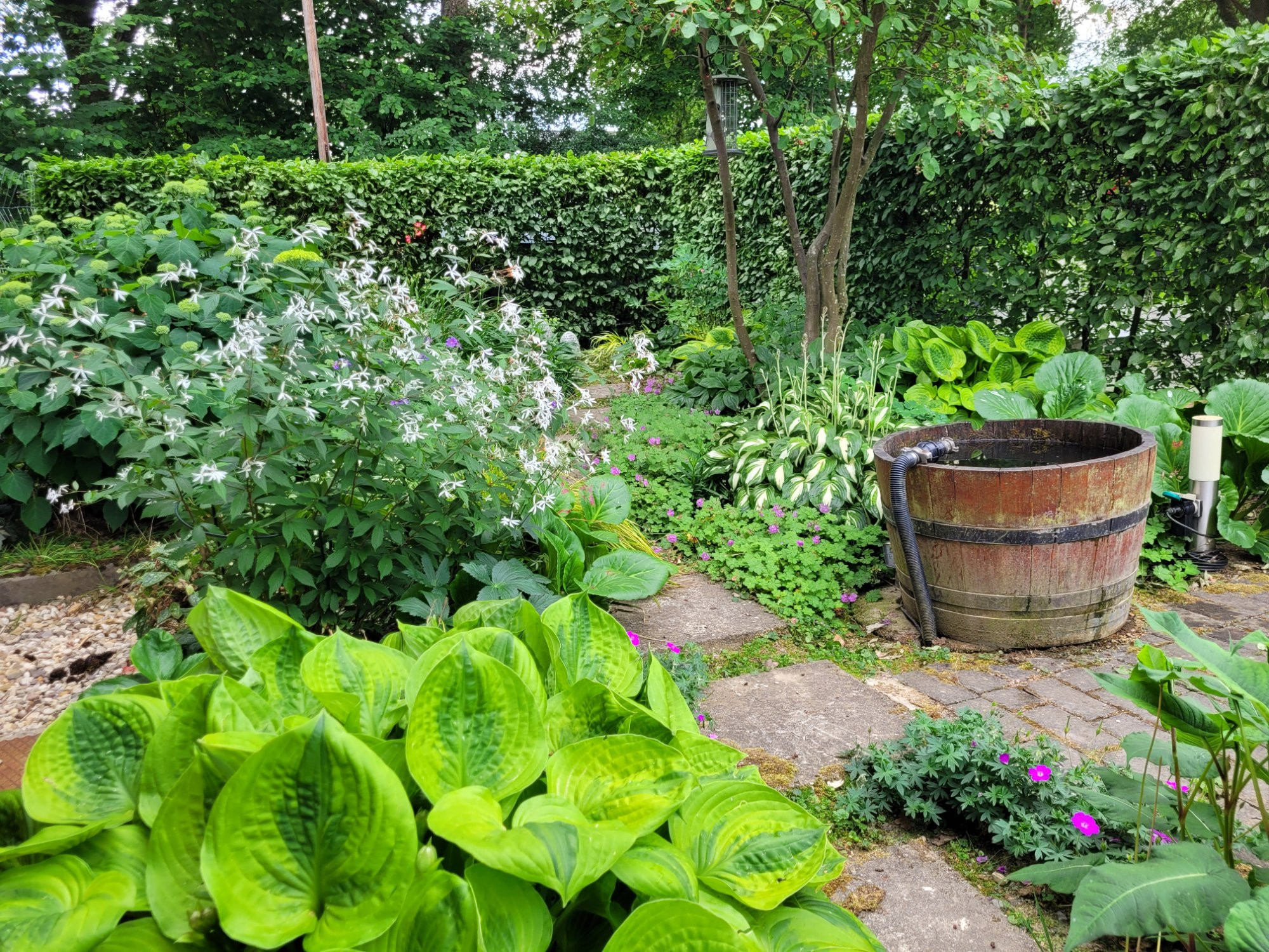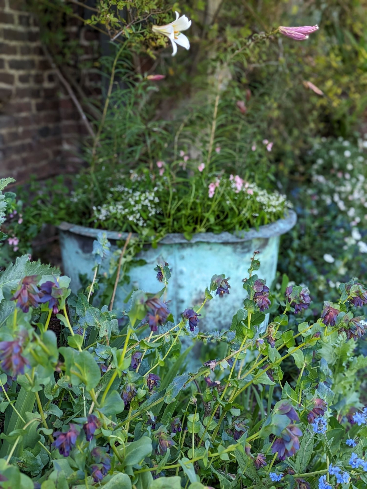 Ich lege an den Kübel an und zeige einen Kupferkessel, wieder Sissinghurst Garden: