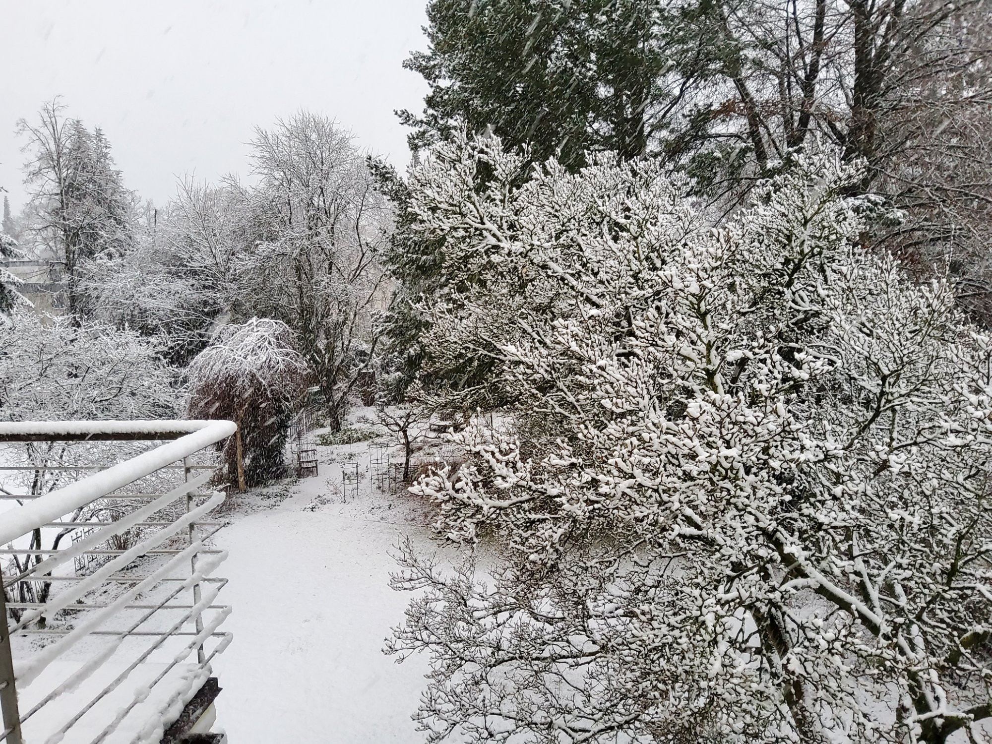 , es schneit munter weiter, was Kalle nicht von seiner Morgenrunde abgehalten hat.