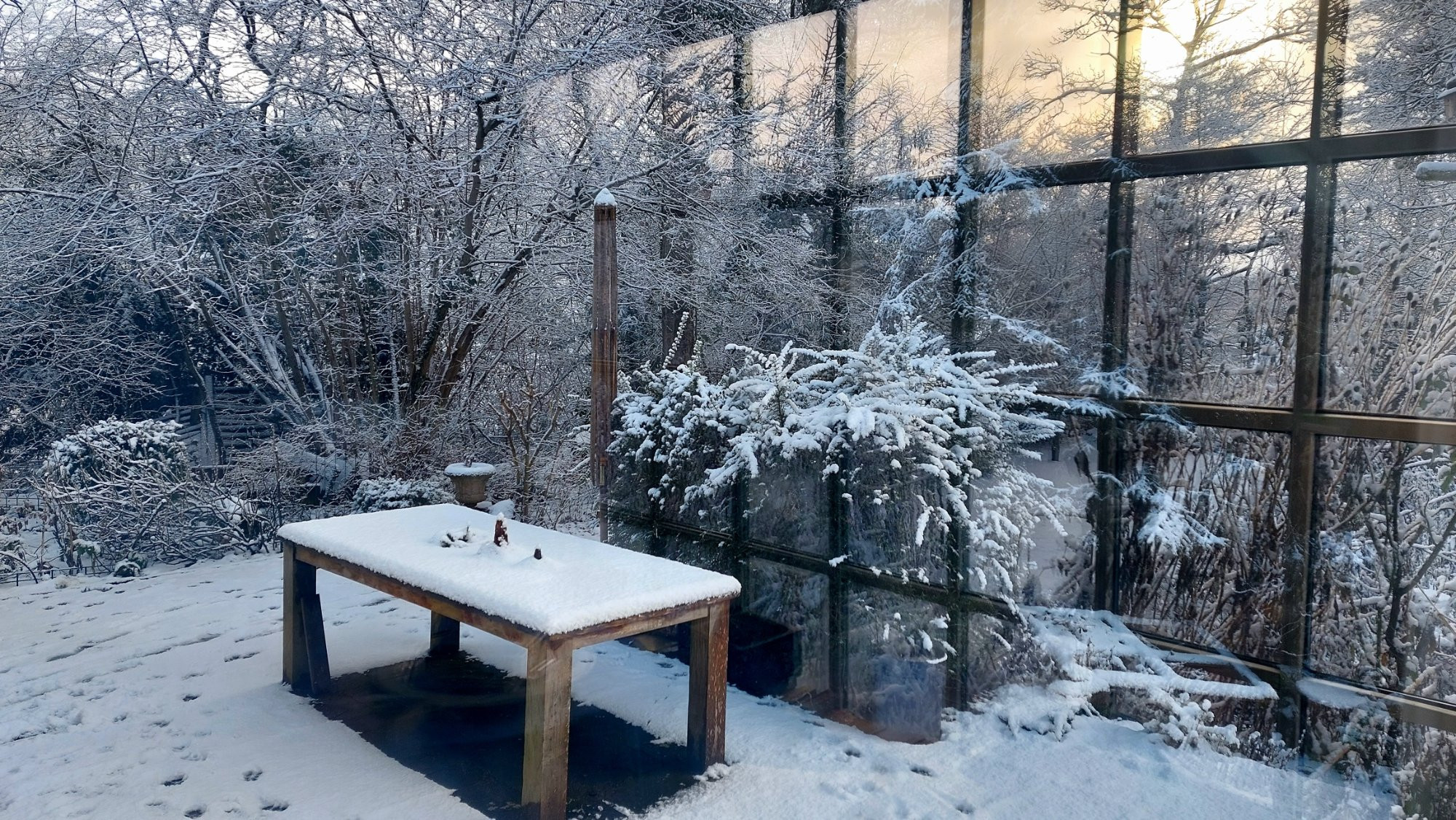 hier ist alles ziemlich dick weiß, mein Fernseher hat gerade die Arbeit eingestellt, offensichtlich sind die Bäume zwischen der Schüssel und dem Satelliten durch den Schnee auf kahlen Zweigen noch undurchdringlicher als im Sommer durch das Laub