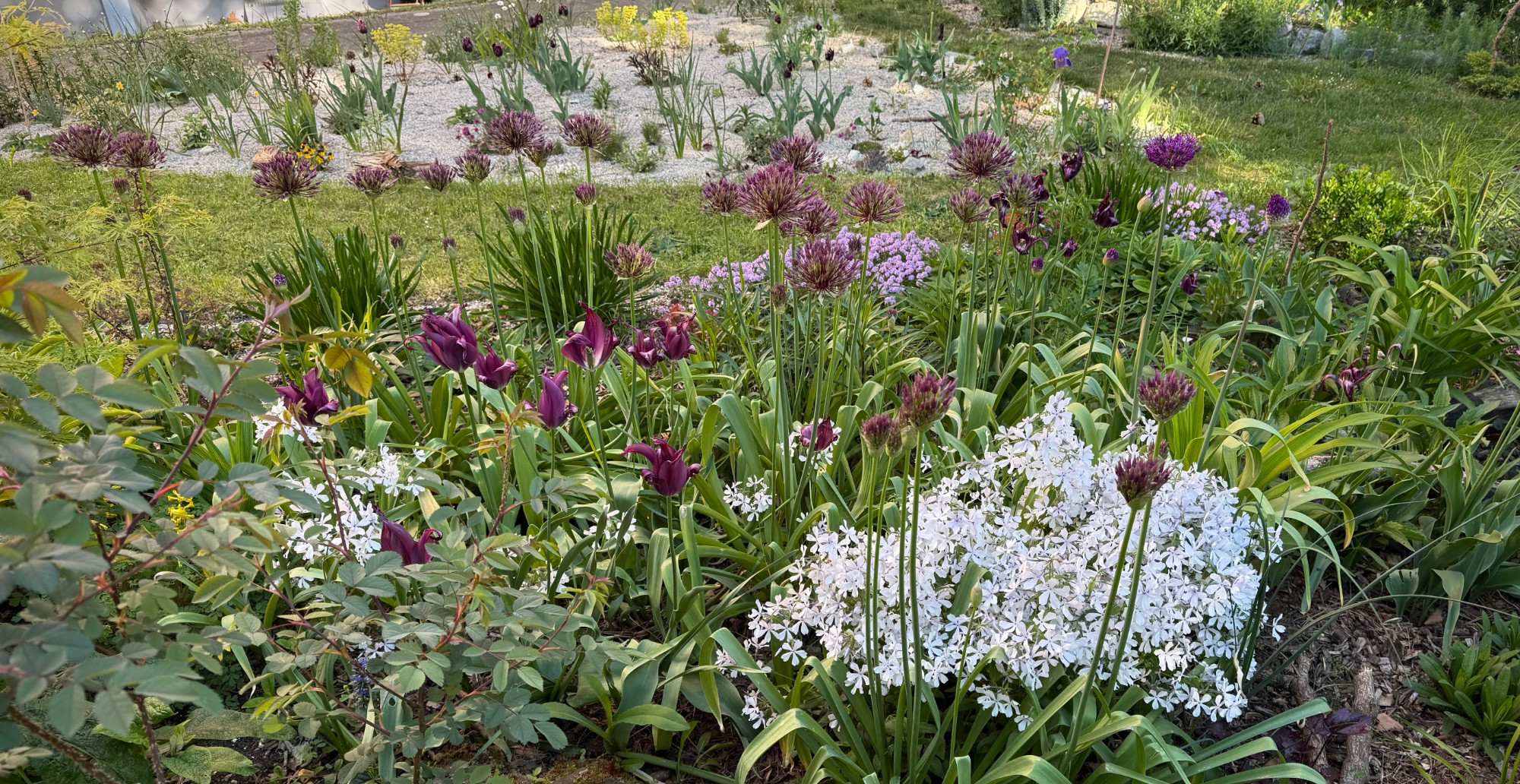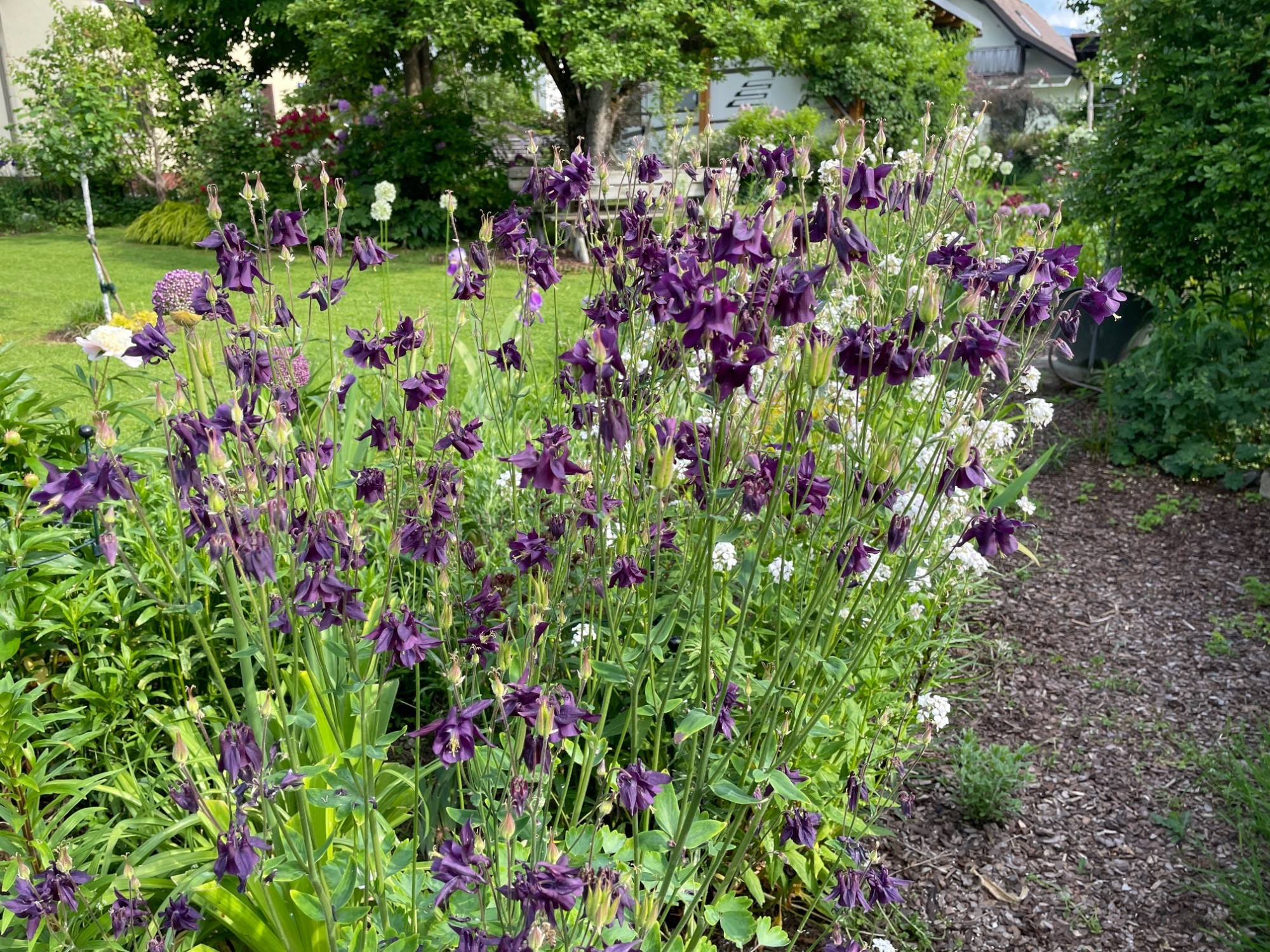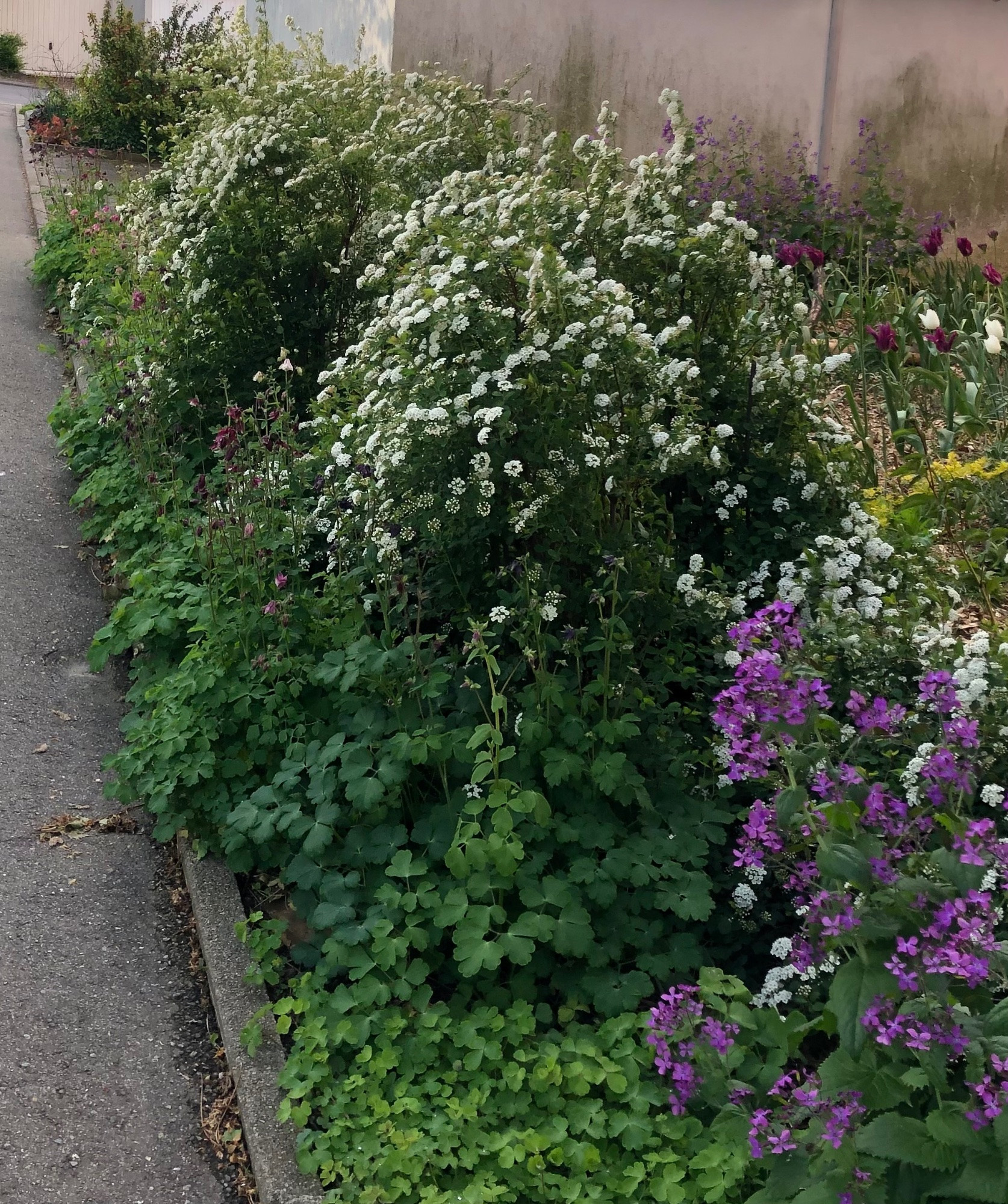 Diese unglaublich akkurate Höhenstaffelung bei Veilchen-im-Moose ist mir auch aufgefallen, da ist nichts umgekippt, nichts überwuchert und jede Staude scheint ihren Platz zu haben. Ich weiß ja durchaus, wie groß meine Stauden werden, aber schon ein anderer Witterungsverlauf bringt alle Planungen komplett durcheinander, wenn in einem trockenen Frühjahr die Pflanzen nur kniehoch werden, und in feuchten Jahren mindestens brusthoch...