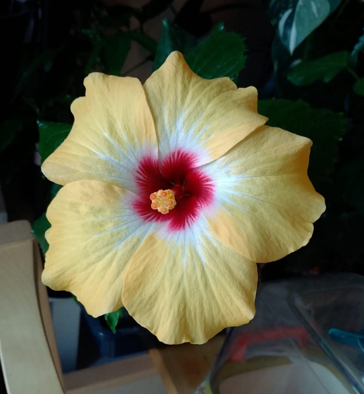 Mein Hibiskus hat heute ein pinke Blüte geöffnet, sieht nach Sport aus. Eigentlich macht er gelbe Blüten, manche haben allerdings auch einen rosa Streifen auf einem Blüteblatt. Hier beides zum Vergleich: