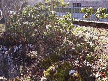 hi,der vater meines lebensgefährten hat vor jahren ein paar rhododendren ans biotop gesetzt, jedoch ohne vernünftigen boden einzuarbeiten. ein einziger ist richtig gepflanzt, das ist der brummer, den man gut erkennen kann. die anderen mickern vor sich hin.ich möchte dieses jahr die rhodendren ausbuddeln, und ihnen vernünftigen boden bereiten.jetzt hab ich gelesen, daß man am besten sehr tief gräbt, sehr große pflanzlöcher macht, die mit folie auslegt, in der ein paar schnitte sind, und dann ein gutes gemisch aus rindenmulch, torf und sand reinpackt, büsche rein, gutes gemisch drauf .... lieg ich da richtig?zweite frage: ich würde das ganze gerne mit funkien, commelina, campanulas, akeleien unterpflanzen, die frage ist, ob diese stauden dieselben bodenverhältnisse wie die rhododendren überhaupt vertragen ....was könnte man noch gut an den teichrand unter die rhodies pflanzen?lieben grußheikeps: die steinböschung im vordergrund ist übrigens jene welche von der uferzaunwinde so durchsetzt ist .... die wird im laufe des jahres auch noch geändert, da z. b. die helleboren dort viel zuviel sonne abkriegen ...