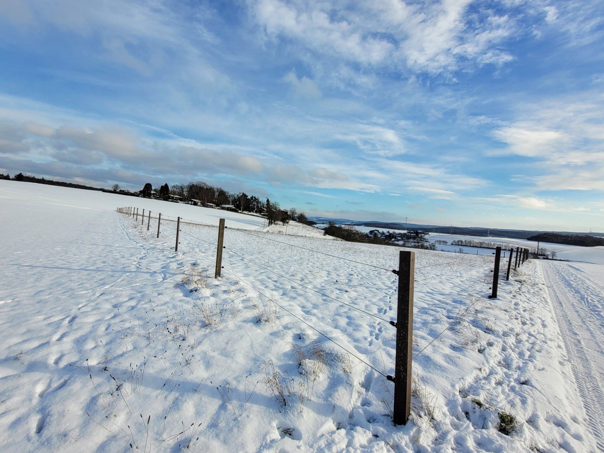 Da hier die letzten Tage nur ein paar Krümel Schnee gefallen sind, herrscht Kahlfrost bei aktuell allerdings strahlendem Sonnenschein. Ab morgen wird's dann spannend. Wenn's auf den seit dem 25.12. knochenhart gefrorenen Boden hier regnet, dann gute Nacht
