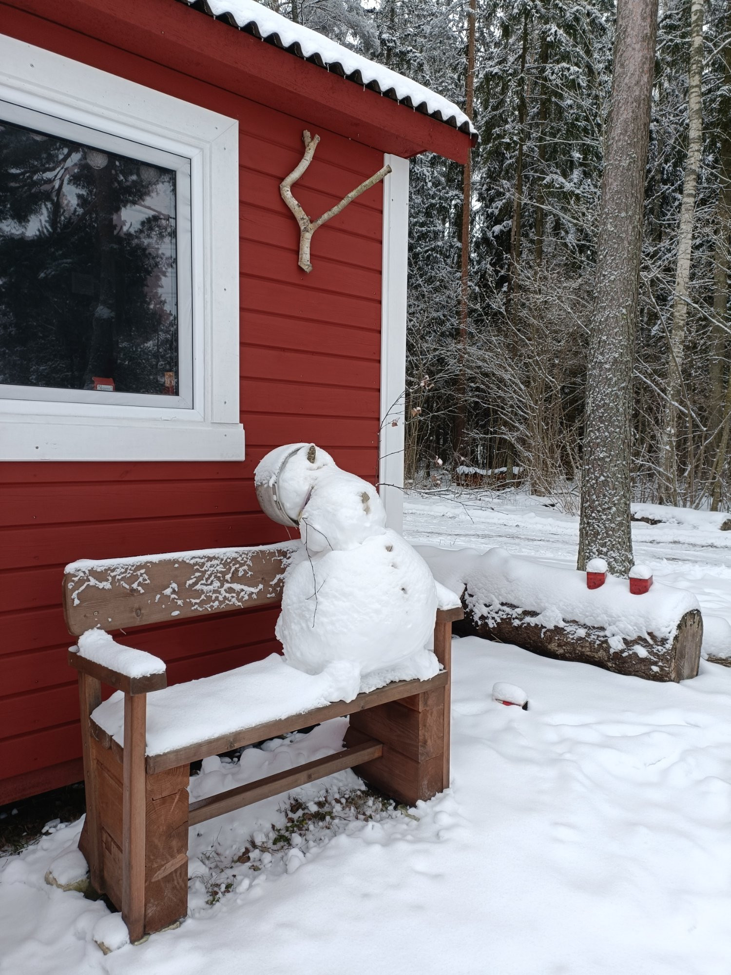 -6 Grad, wir warten noch auf die versprochene Sonne. Der Schneemann ist dabei eingeschlafen.