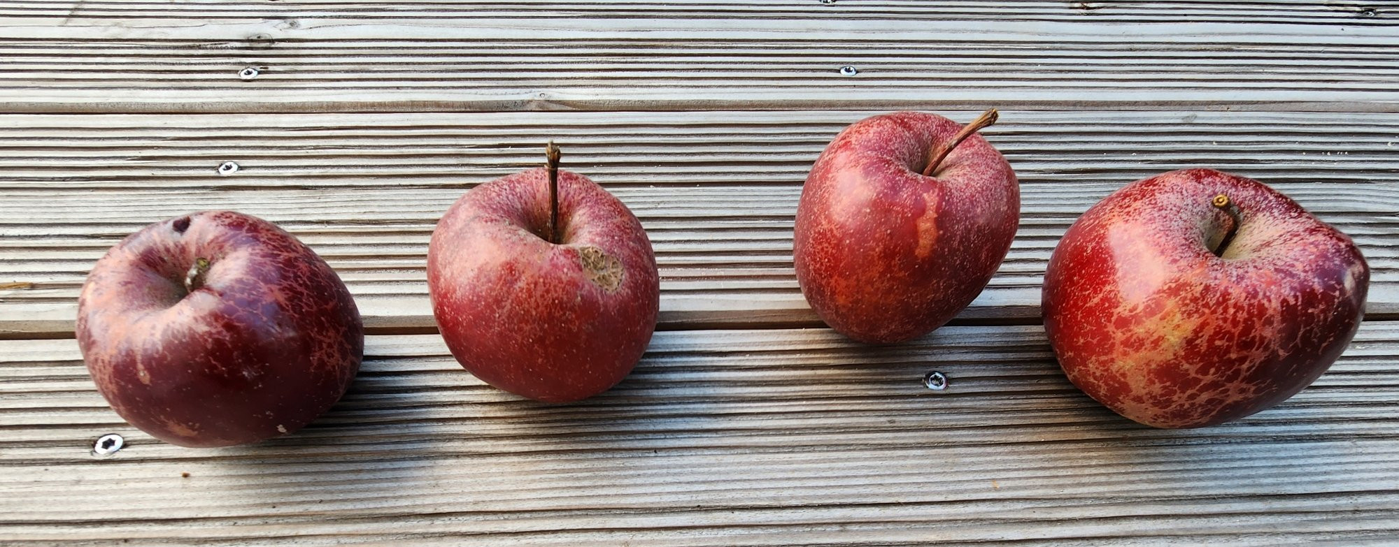 Viele Früchte waren nicht dran. Die gezeigten würde ich aus der Erinnerung heraus für repräsentativ halten.cydorian hat geschrieben: ↑8. Dez 2025, 11:43 Keine Ahnung, wie ausgesucht und repräsentativ die Fruchtbilder sind. Es gibt ja alle möglichen schwach oder gar nicht berosteten Rotmutanten von dem. Sinnvoll wäre, sich den Baum nochmal anzusehen, Boskoop produziert ziemlich charakteristische Bäume, ist triploide Sorte und deshalb starkwachsend, lange Äste, breit, aber auch etwas licht. Auch die Kerne von Boskoop sind typisch für triploide Sorten, oft taub, lang, nicht glänzend. Äpfel wirken oft etwas windschief.