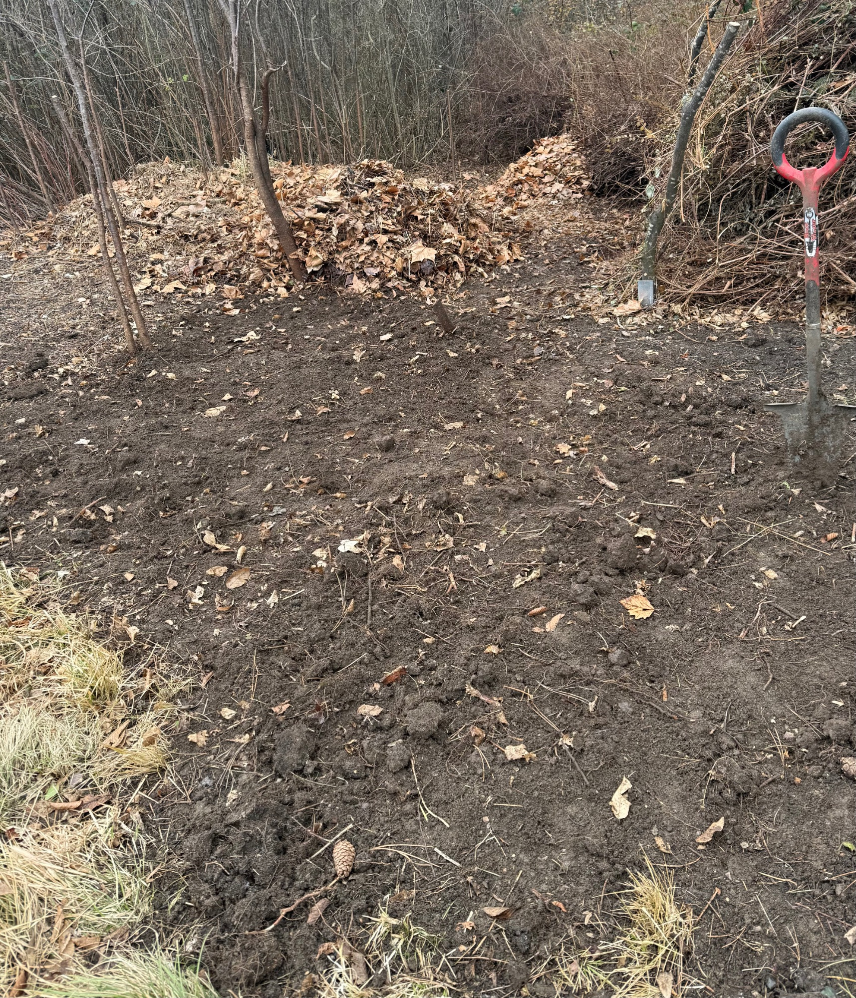 Ich habe heute an unsere Nord-West Ecke die Purpurbeere zu Ende gerodet. Sind nur ca. 9 m2 . Im November wegen der Rosenlieferung musste ich die Rodung hier abbrechen.