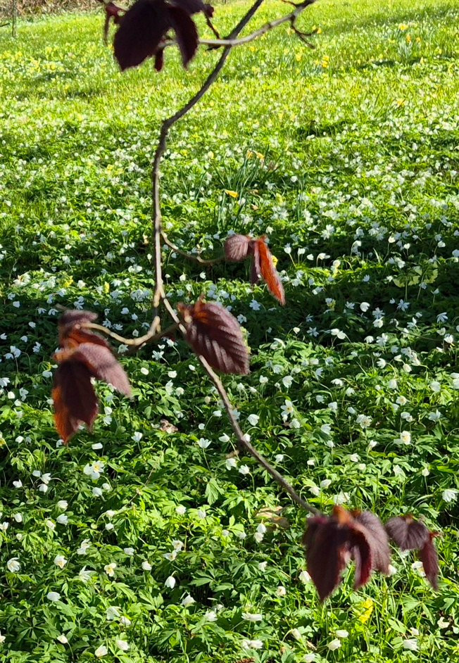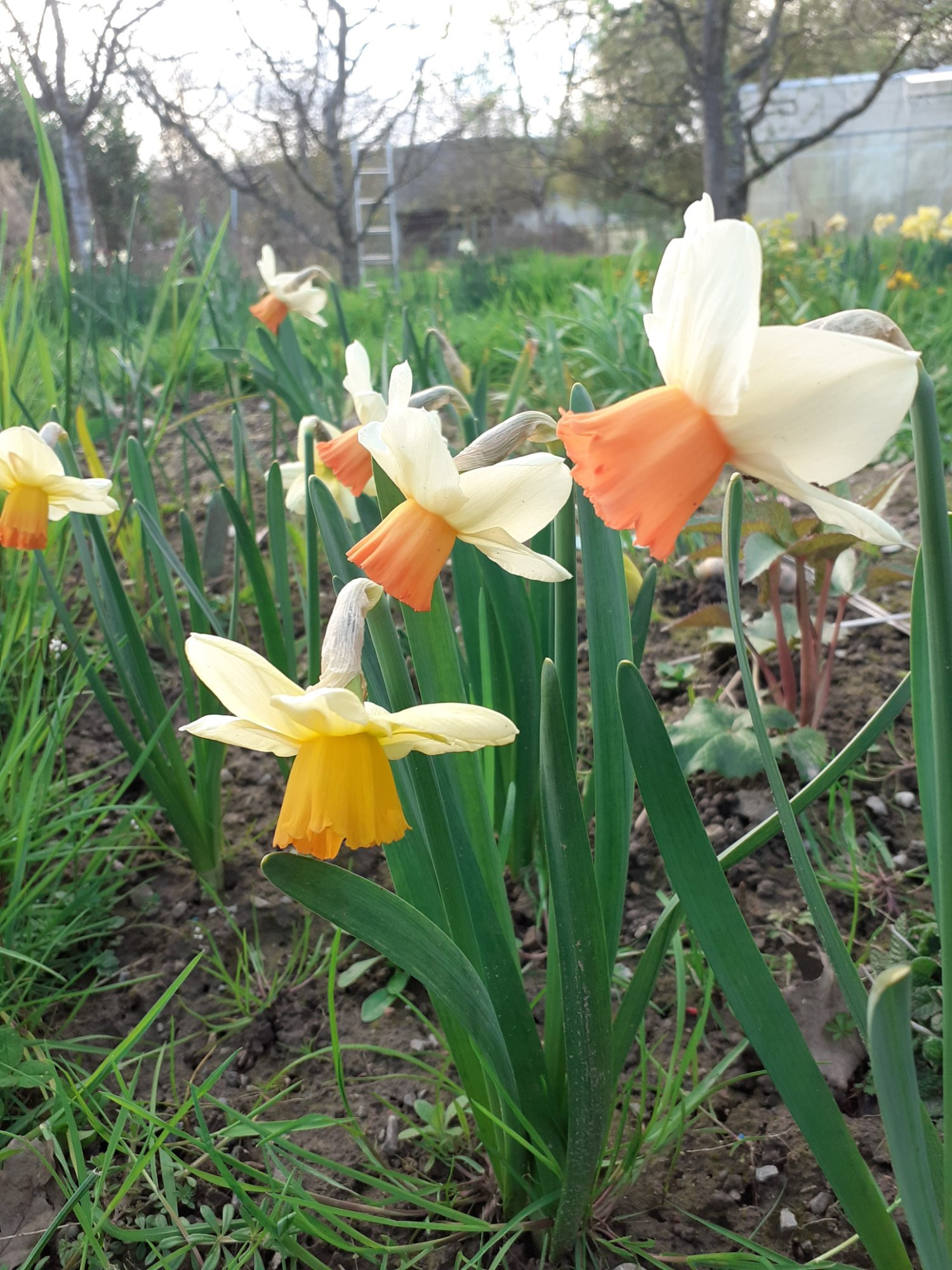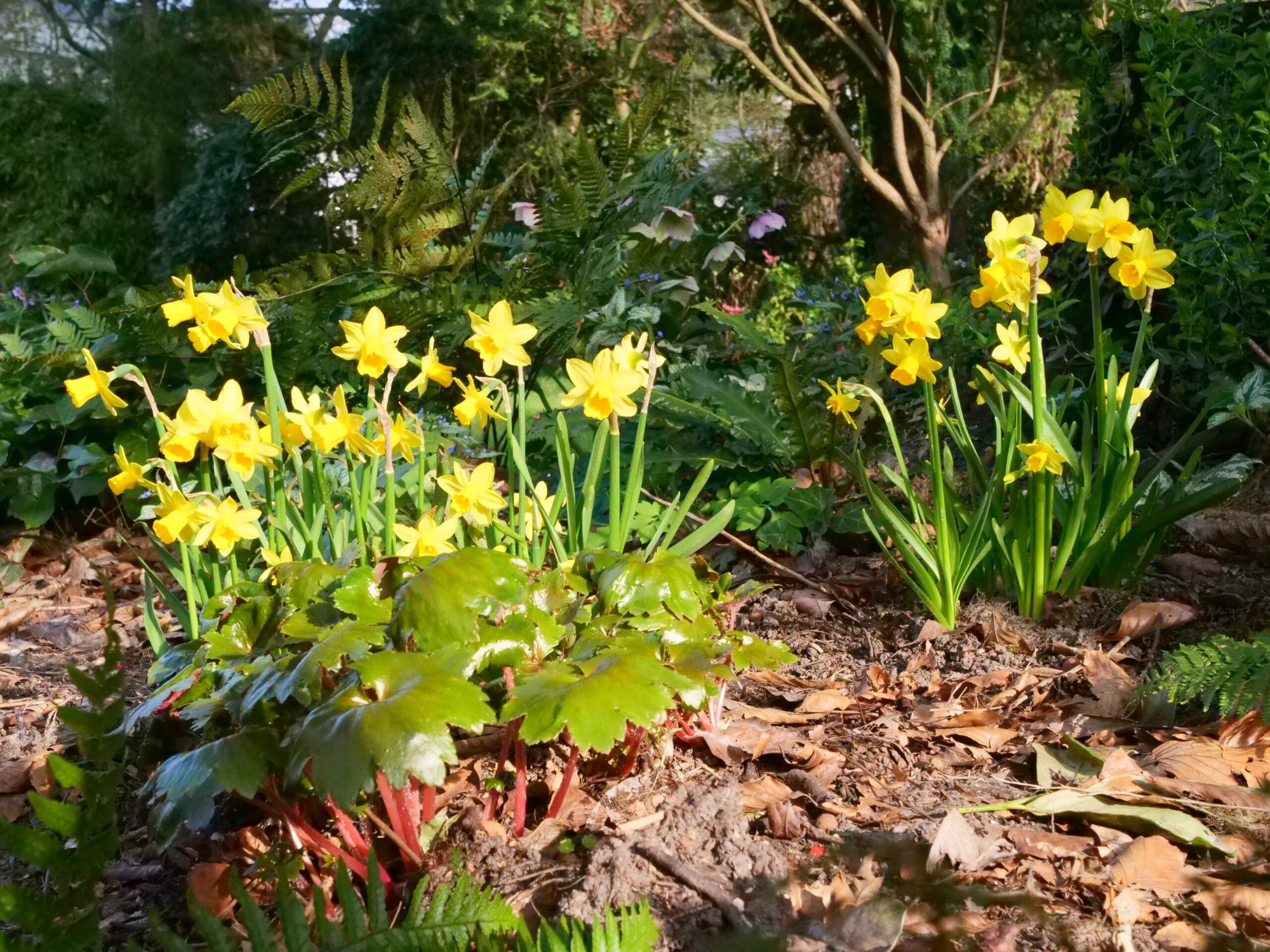 Narzissen, vorne Oktoberle, im Hintergrund Helleboren