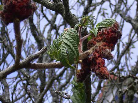 Ein "Ganzkörperbild"ist im Sommer schwierig da in gerader Sicht andere große Bäume stehen.Ich habe jedoch eines vom letzten Frühjahr gefunden.Damit ihr euch die Ausmasse vorstellen könnt, unser Haus hat etwa eine Breite an der Giebelseite von 12 m und früher als der Essigbaum noch Laub trug,war vom kompletten Giebel nichts mehr zu sehen.