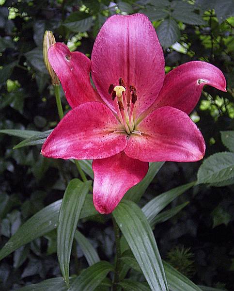 wegen der bulbiferum-blüte (insbesondere das starke überlappen der petalen ist ungewöhnlich) bin ich auch immer wieder etwas zweifelnd, auch wegen der recht schwachen zeichnung. laub, habitus und vor allem die vorhandene achsel-bulbillenbildung aber scheinen mir letzlich darauf hinzuweisen, daß es sich denn eben doch um l. bulbiferum var. bulbiferum handelt. da ich die pflanze hier im garten beim einzug vorfand und nicht selbst gekauft habe, musste ich sie selbst bestimmen. etwas anderes als die spezies scheint mir nicht in frage zu kommen, denn kreuzungen von bulbiferum sind doch schon lang nicht mehr zu finden in zeiten der oriental-manie.auch die bilder auf http://www.the-genus-lilium.com/bulbiferum.htm weisen auf bulbiferum hin. wie gesagt: abzüglich der schwachen zeichnung. für korrekturen aber bin ich jederzeit zu haben ...