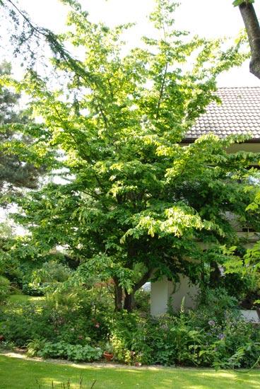 Die Parrotia persica - über 40 Jahre alt und schon länger hier wohnend als wir - war das Monster in diesem Garten, raubte uns Licht und Platz, drohte uns zu ersticken. Voriges Jahr hat sich ein echter Baumschneidekünstler ihrer angenommen und sie aufgeastet und zu einem wirklich ansprechenden Baum geformt, jetzt bin ich sehr zufrieden mit ihr.