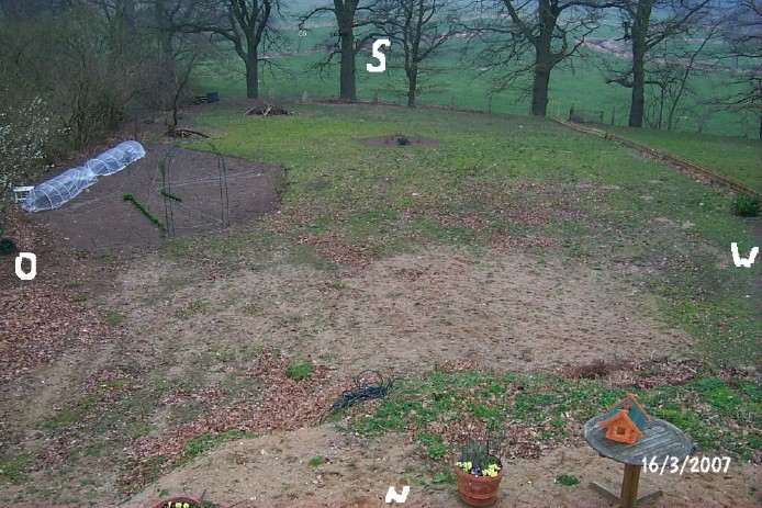 "links entsteht gerade (wie schon richtig erkannt) ein Gemüsebeet welches von Jhannisbeeren eingefaßt ist und mal einen Staketenzaun erhalten soll." - Hübsch!"das Grundstück werden wir wohl mit einem Wildzaun einzäunen müssen da die Rehe und ildschweine sich jetzt schon sehr wohl bei uns im garten fühlen." - Besser isses wohl" Die Eichen gab gratis dazu, gehören dem Bauern dem das Feld unten gehört." - Sehr schön! Nur schade daß sie im Süden stehen.