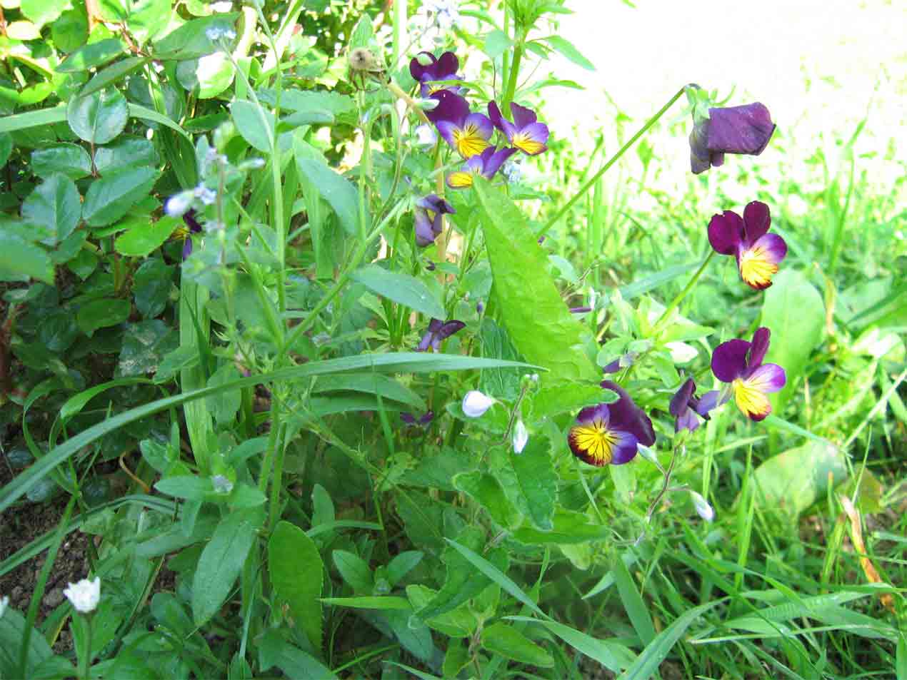 Etliche andere stehen einfach in der Wiese, da dürfen Wildblumen wie Ehrenpreis, Schafgarbe, Glockenblumen, Frauenmantel, Stiefmütterchen etc. bis an die Scheibe wachsen. Das gibt oft hübsche Überrasschungen