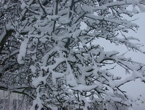 Mittlerweile ist der Schneefall zunächst in pampigen Matsch übergegangen, jetzt hat es aufgehört zu schneien, bei Temperaturen um 2°C ist gerade eine riesige Dachlawine vorm Computerzimmerfenster runtergegangen, ich hab´ mich mächtig erschrocken