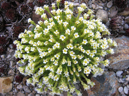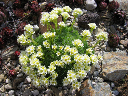Die Blüten dieser Saxifraga haben sich weit vom Pflanzenkörper weggestreckt. Deshalb nur ein Blütenbild