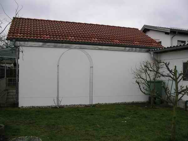Hallo Marcir,vom Rosenbogen aus schaue ich von links auf die Gartentüre, den Eingangsweg, davor der Weiher und dann das Haus. Neben der Gartentüre steht ein großer Gingko, dort wollte ich zuerst meinen Schattenplatz mit einer halben Rundbank anlegen. Aber erstens ist der Platz etwas eingesehen, zweitens der Untergrund um den Baum schlecht zu bearbeiten oder zu bepflanzen wegen der großen Wurzeln. Und drittens der hohe Preis für eine solche Bank. So habe ich mich für den Platz an der Nachbarsgarage entschieden. Der Weg entlang der Garage kommt von der Gartentüre.Deine Ideen sind toll aber es sollte wirklich nur ein schmaler Pflanzstreifen werden, wo ich mich am späten Nachmittag im Schatten verdrücken kann. Sitzplätze habe ich eine Terrasse mit Markisen nach Süden (nachmittags zu heiß) und einen sonnigen Platz mit kleiner Pergola an der Westwand des Hauses für die Abendstunden.Gruß Karin