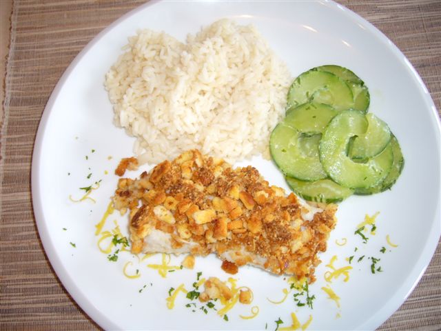 Heute gab es:Nüsslisalat (Feldsalat) mit pochierem EiDorsch überbacken, Reis und gedämpfte Gurke