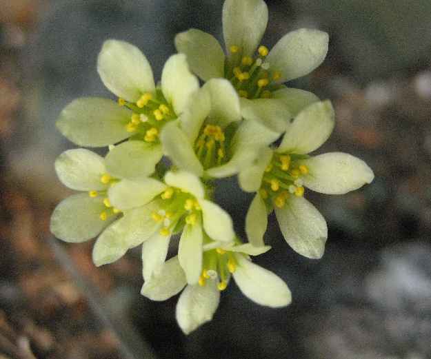 Die Blüten dieser Saxifraga haben sich weit vom Pflanzenkörper weggestreckt. Deshalb nur ein Blütenbild