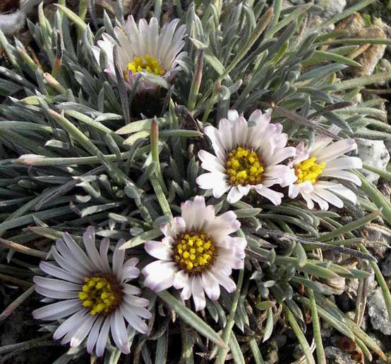 Naja, muss zugeben, dass ich ein bisschen geschwindelt habe. Die steht im Topf unter Glas. Muss erst Jungpflanzen großziehen, die ich dann auspflanzen werde.Sehr gute Erfahrungen im Freiland habe ich übrigens mit T.rothrockii gemacht. Die hat durch Versamung dafür gesorgt, dass immer einige Townsendien, oft an den unmöglichsten Stellen, geblüht haben. Ich habe diese Art viele Jahre ohne jeden Schutz hier gehalten, erst der strenge Winter 2005/2006 hat den Bestand vernichtet.