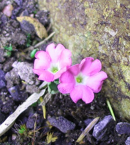 Dieser absolute Zwerg, so ca. 1 cm hoch, ist im Gegensatz zu den anderen, deutlich größeren Pflanzen als erster erblüht: Primula hirsuta, oder wie sie in Tirol sagen: Steinrösel