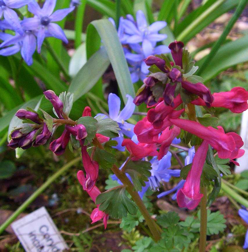 Die kräftig gefärbte Unterart Corydalis solida ssp. incisa zusammen mit x Chionoscilla allenii ...