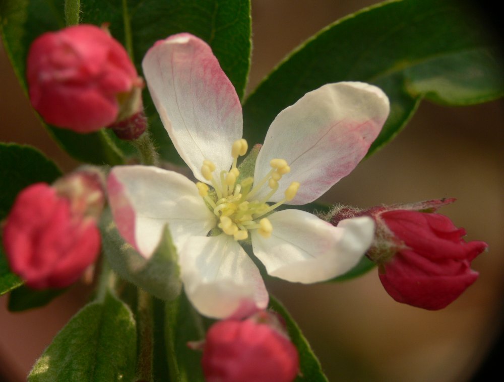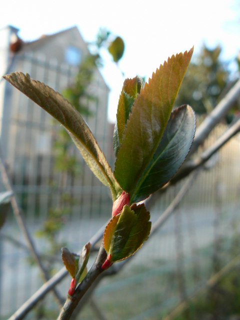 wieder mal ein paar simple pleasures:neu im garten ein zierapfel, den ich im kalten winter 05/06 gekauft habe, weil er im jänner noch massig früchte hatte. malus Van Eseltine, hier vor schlehen.