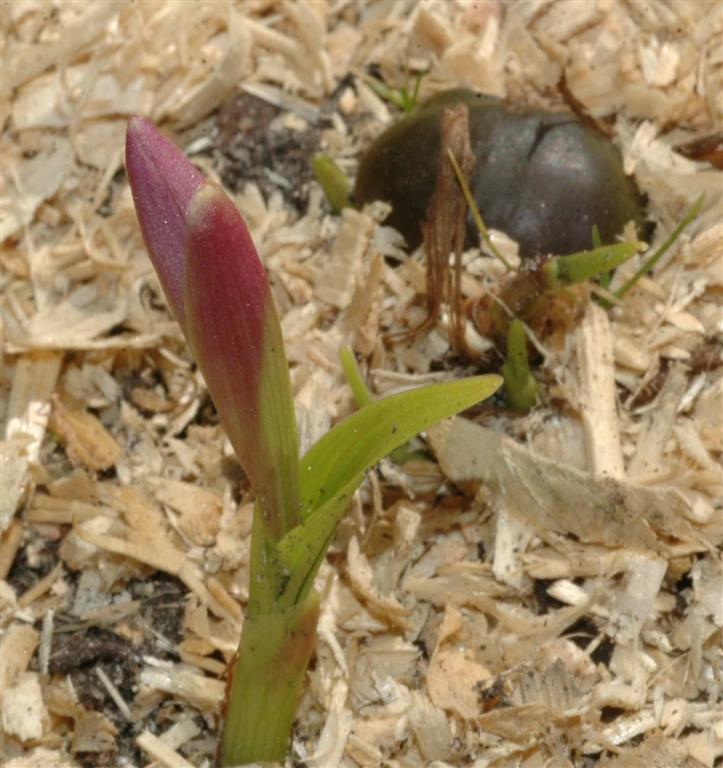 Meine Pleionen, draussen nur überwinterd unter einem Häufchen Sägespänen. Hoffentlich warten sie bis nach Ostern mit blühen