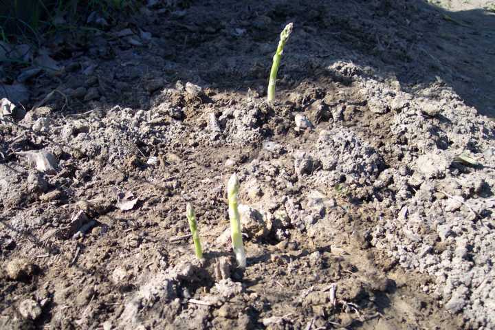 Ich hab voriges Jahr - nur zu Dekorzwecken - einen Spargel gesetzt, jetzt gucken schon die ersten eineinhalb Spitzen heraus.