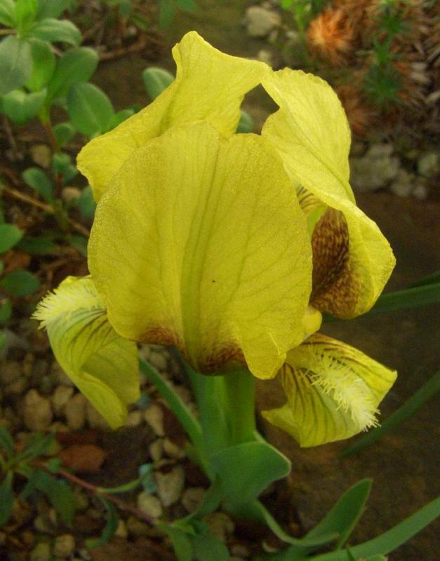 Könnte Iris reichenbachii sein... die gibt's in gelb und in blau, bei mir der früheste Zwerg.Der gelbe meiner namenlosen Zwerge, sein violettes Pendant steht auch schon in Blüte (und wird morgen fotografiert)!![]()