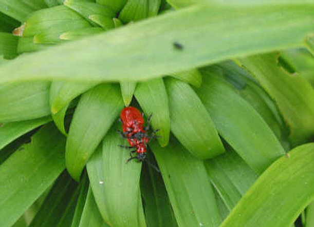 Schönes Foto von der Lilienhähnchenpaarung.Ein Glück, dass sie so gut zu sehen sind! Trotzdem ist meine Madonnenlilie schon ziemlich zerfressen. Nicht nur die Larven, sondern die Käfer selbst fressen auch ganz ordentlich was weg! Wo kommen die eigentlich immer her? Jedes Jahr sammele sorgfältig die Käferchen ab und vernichte sie - und immer wieder sind sie auf's neue da!